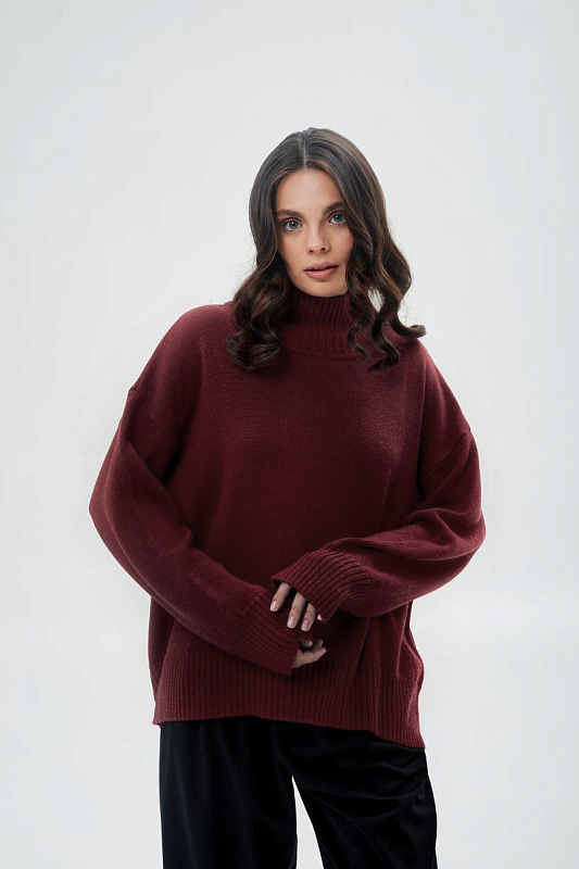 Свободный джемпер в стиле "оверсайз" с заниженной линией плеча и закрытой горловиной