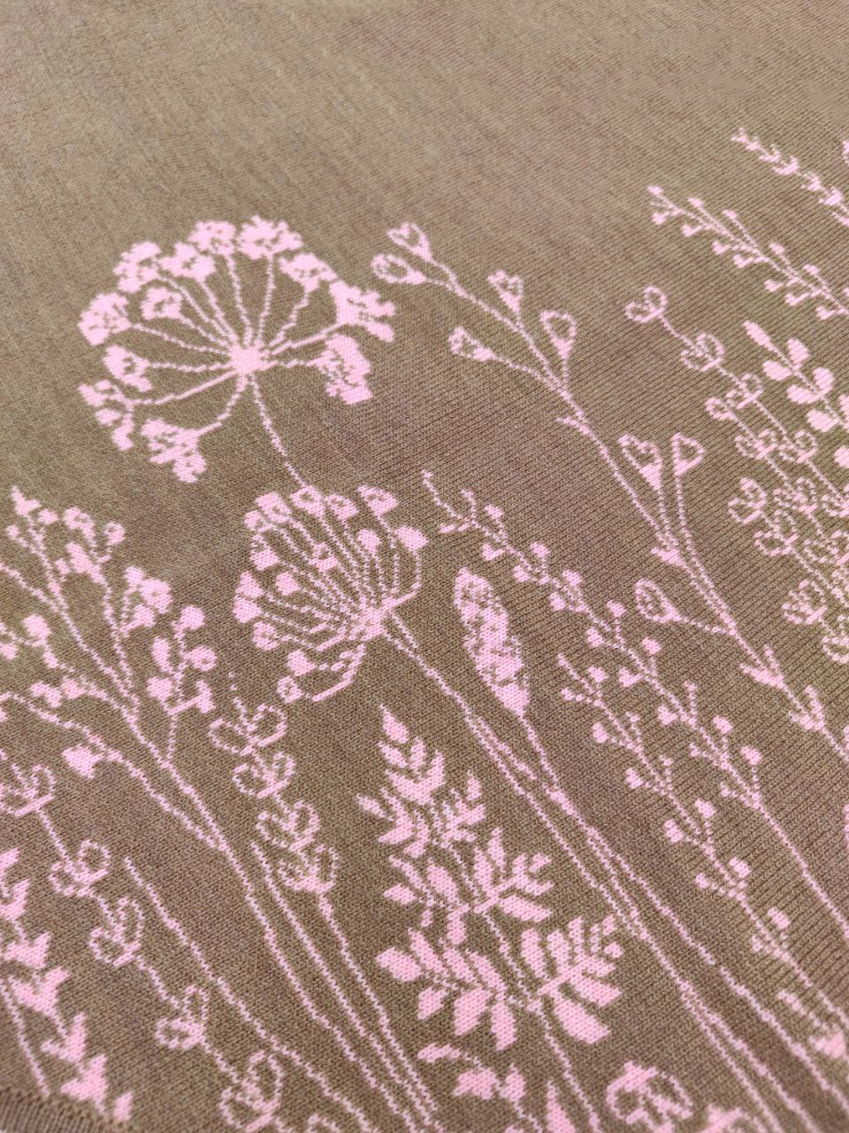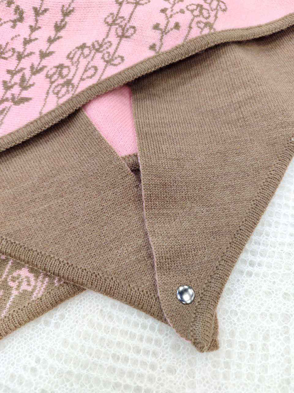 Оренбургский платок-косынка К502-15/29 розовый/т.беж