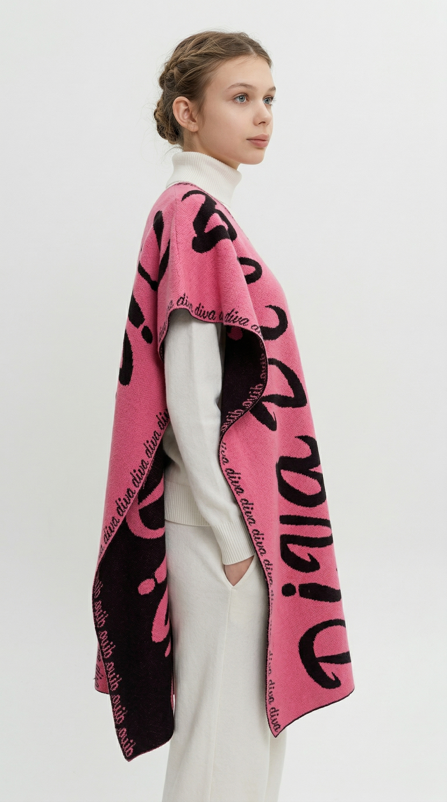 Данная накидка является новинкой в нашем ассортименте. Она была разработана ведущими стилистами, перед которыми стояла задача создать универсальное изделие, отвечающее современным веяниям моды. Таким образом, накидка вобрала в себя не только качества базовой вещи – теплоту, износостойкость, универсальный размер, но и яркий, смелый характер трендового аксессуара для стильных образов. Накидка двухсторонняя, её можно использовать в разных луках, начиная от сдержанных офисных и заканчивая модными street-style образами с кроссовками, кепи и сумкой кросс-боди.