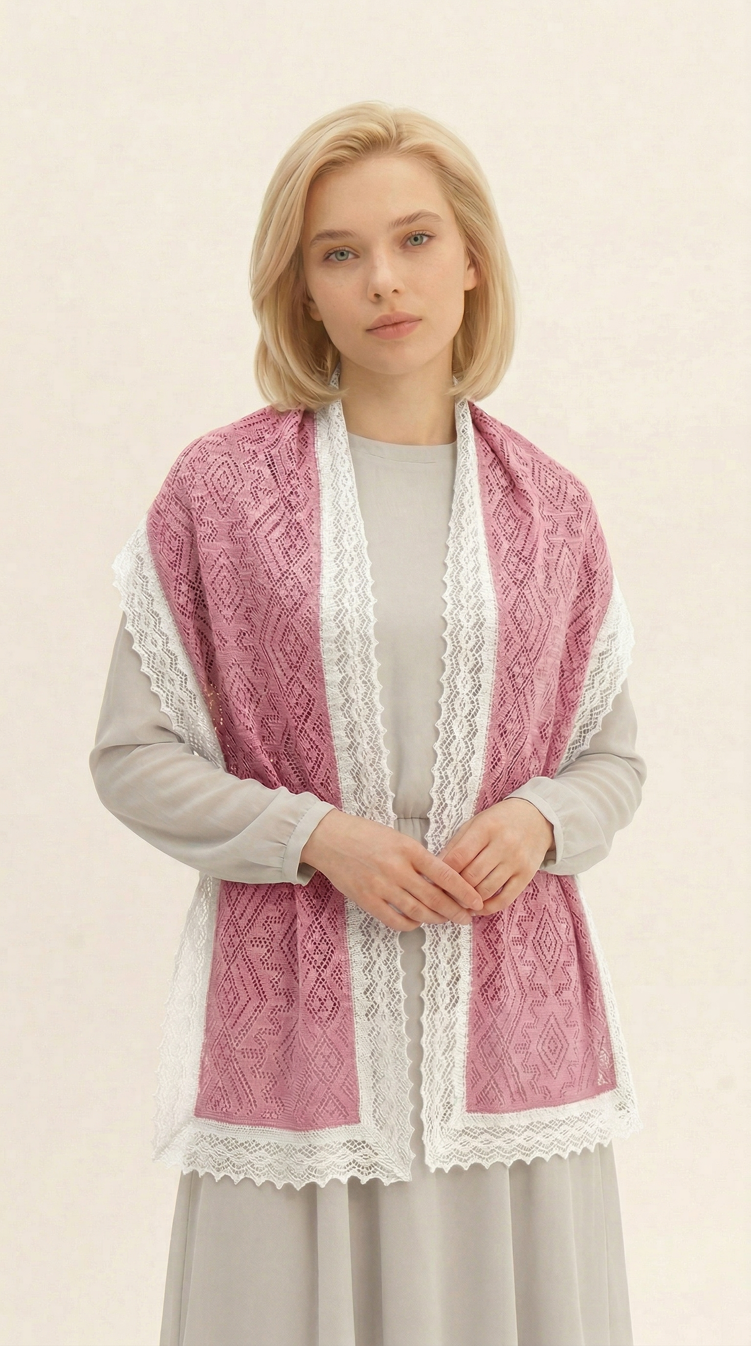 Оренбургский ажурный летний палантин МА16070-15/02 розовый/экрю от Фабрики Оренбургских пуховых платков