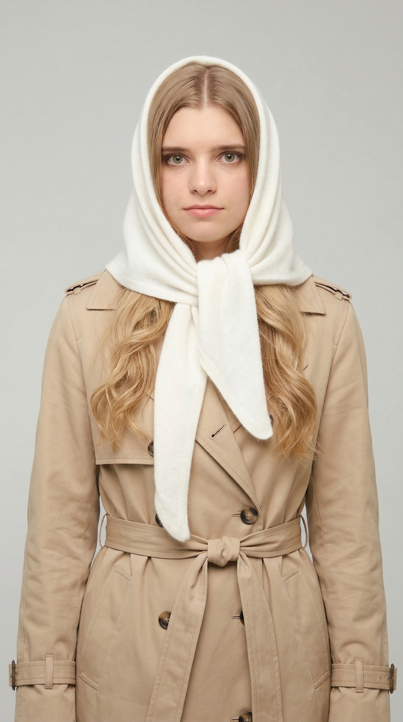 Оренбургский платок-косынка К820-02 экрю от Фабрики Оренбургских пуховых платков