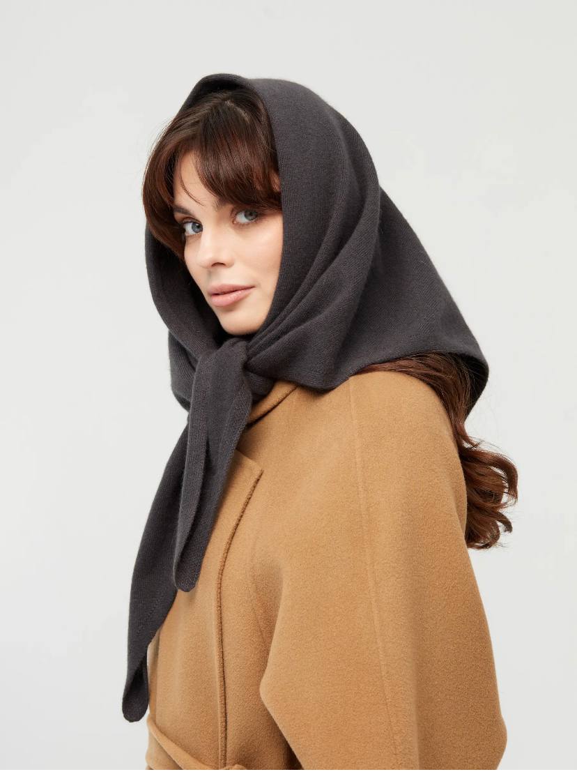Оренбургский платок-косынка К820-24 графит от Фабрики Оренбургских пуховых платков