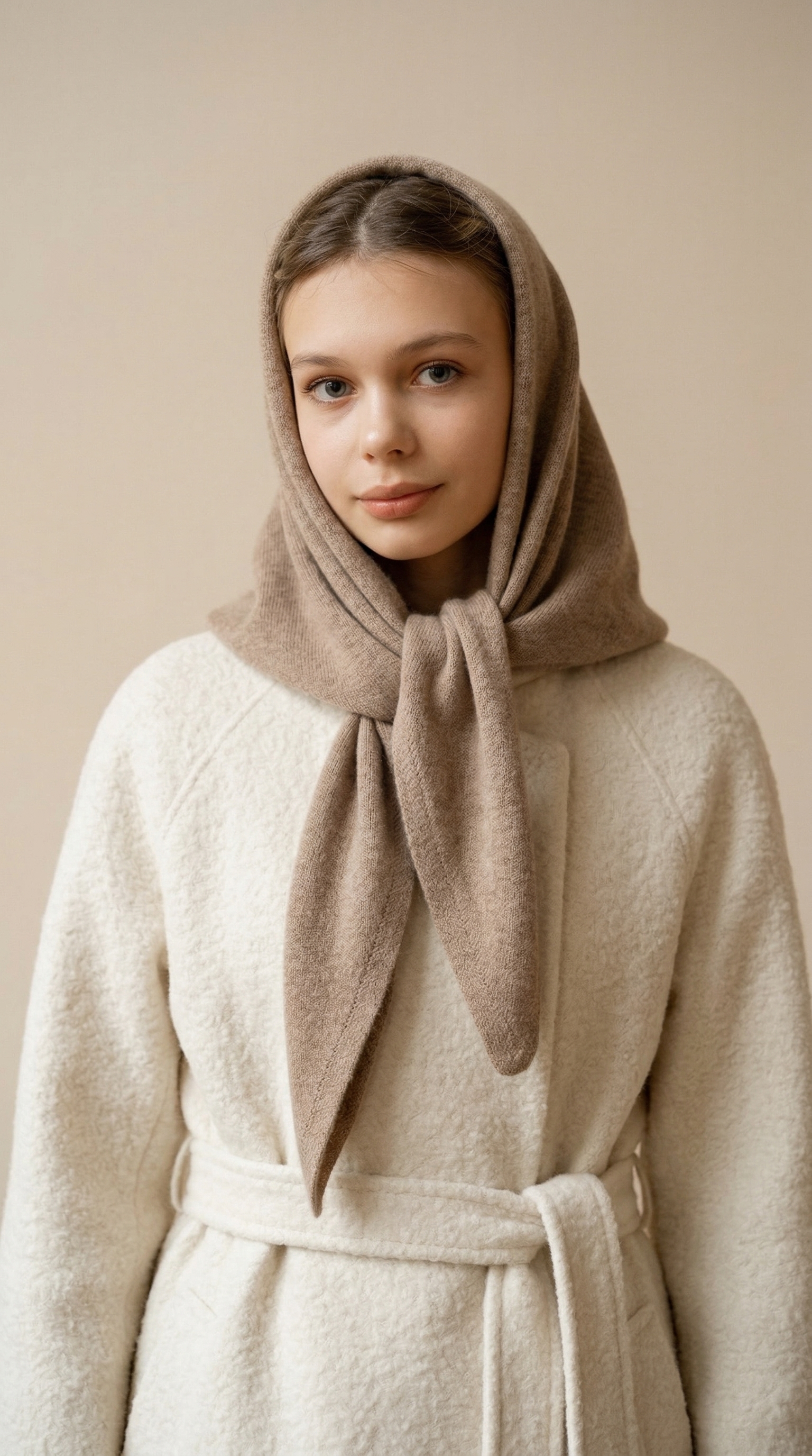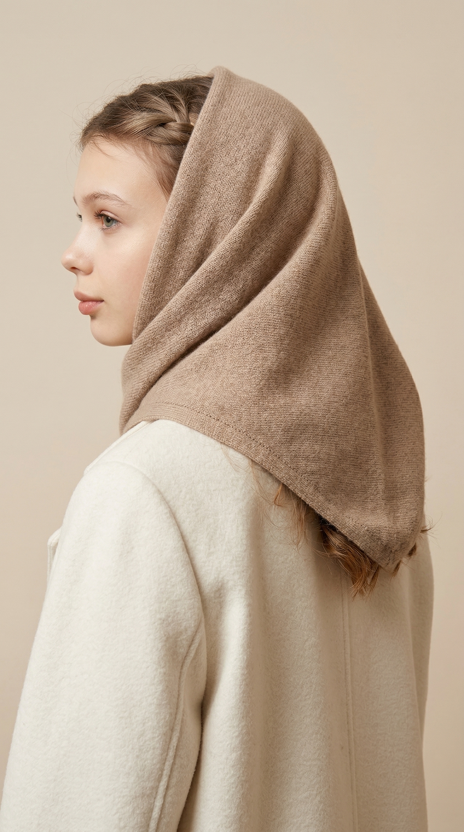 Оренбургский платок-косынка К820-29 т.бежевый от Фабрики Оренбургских пуховых платков