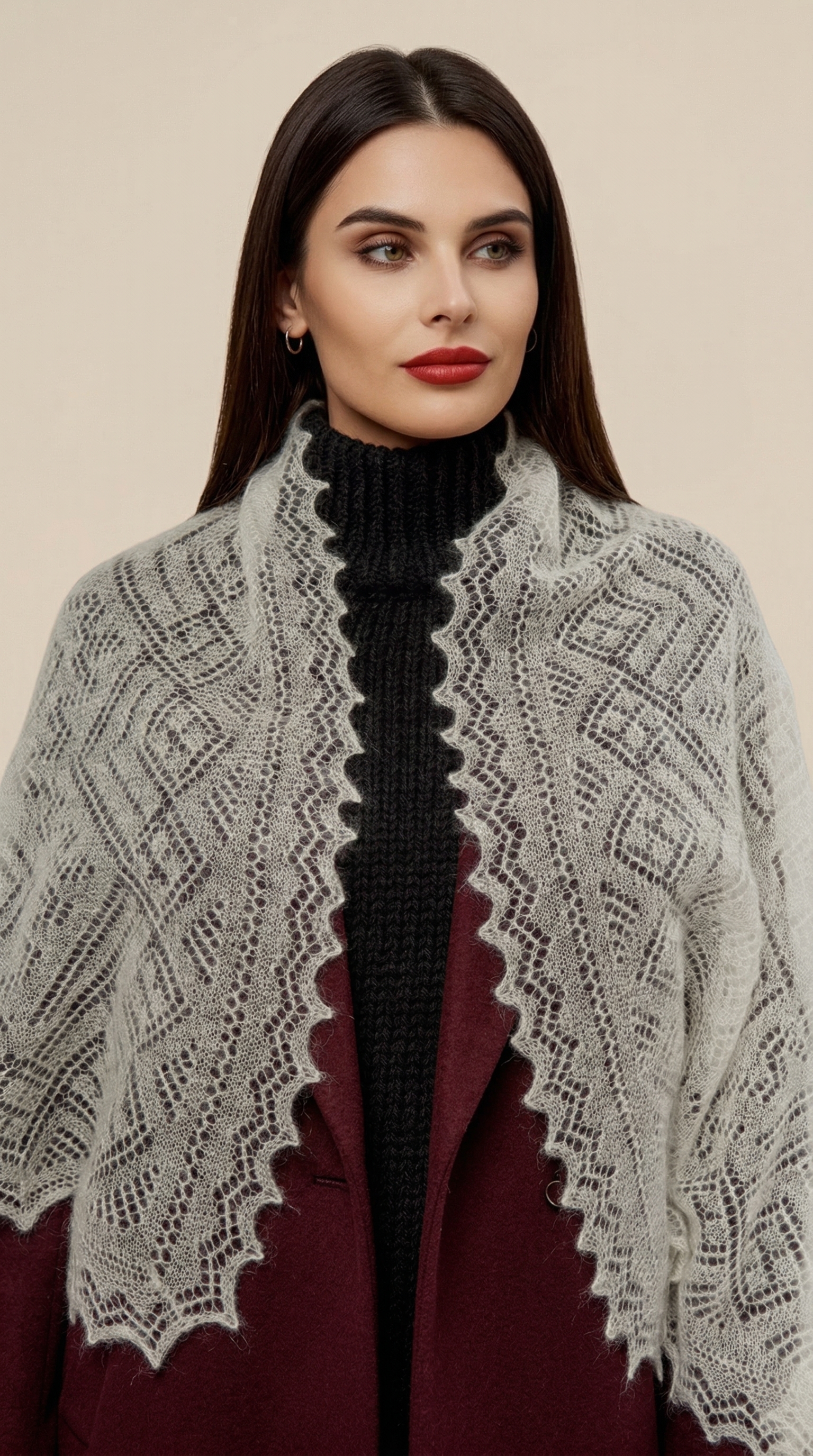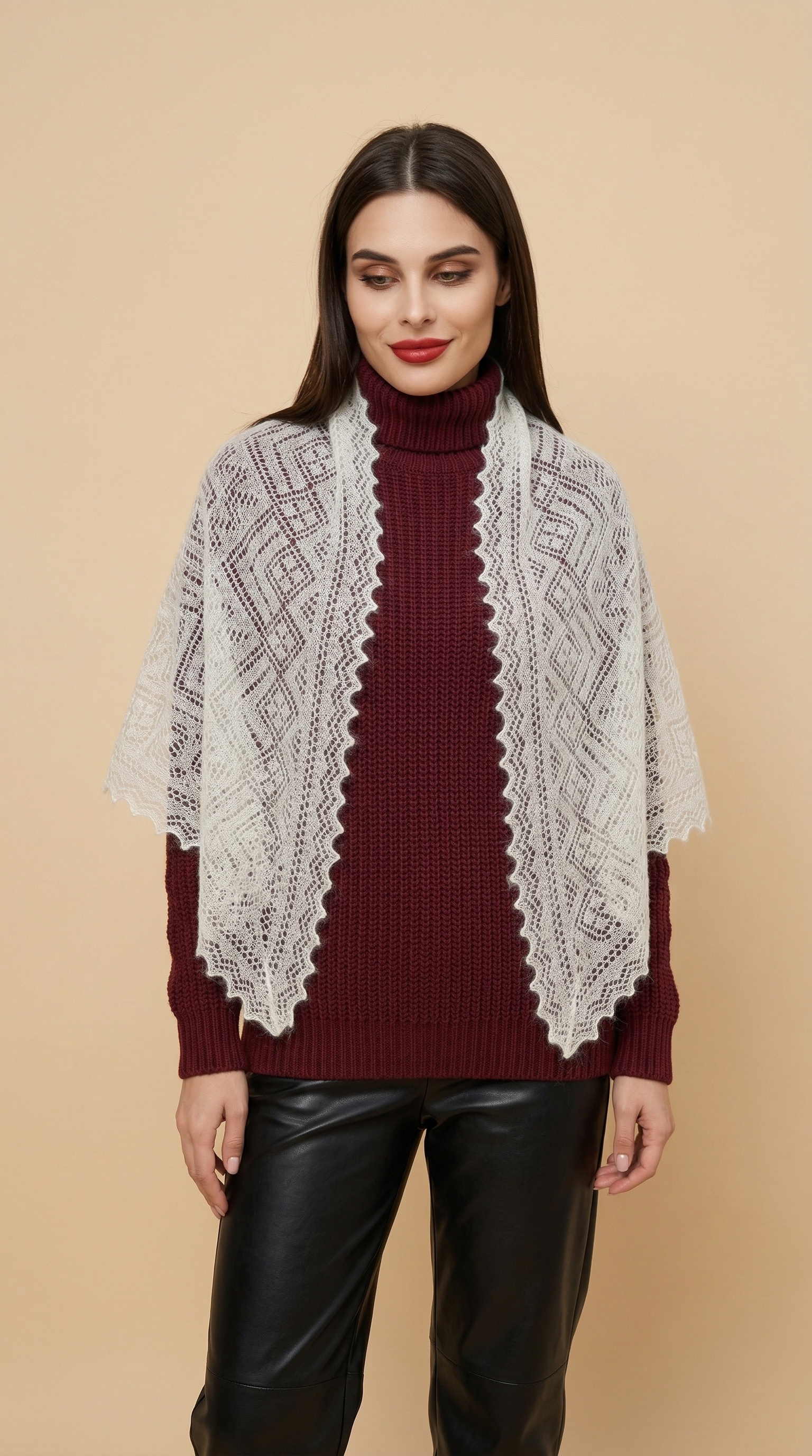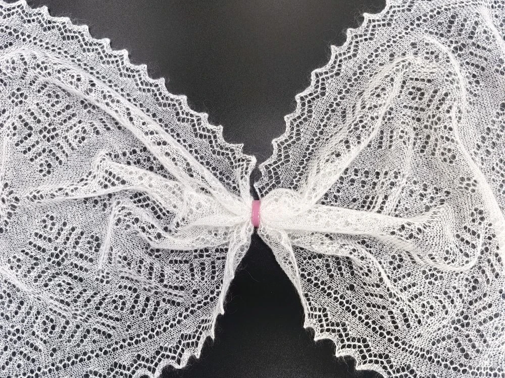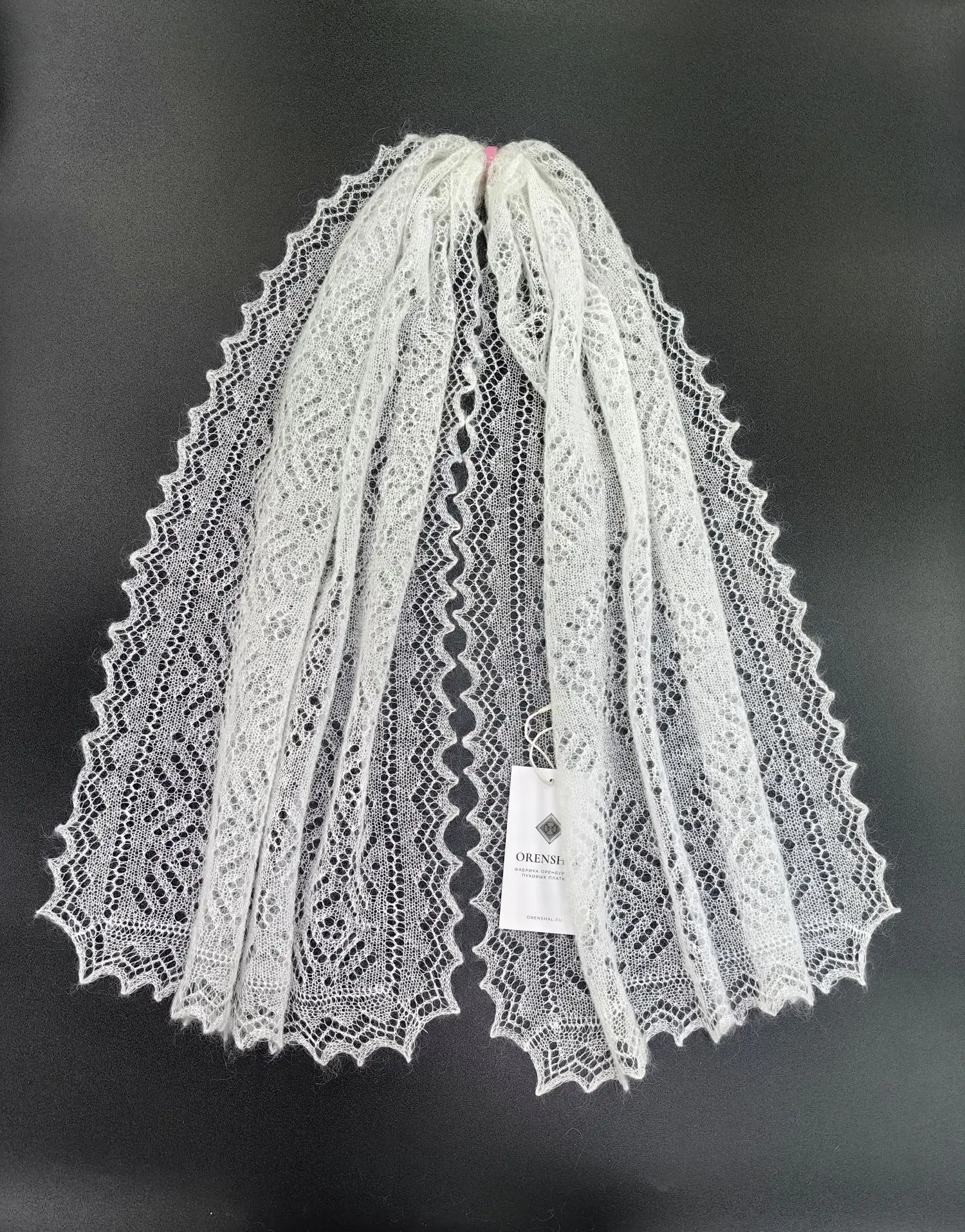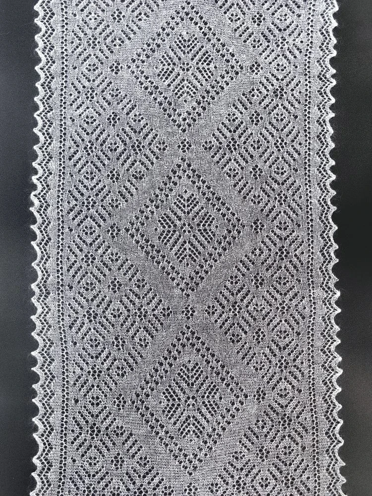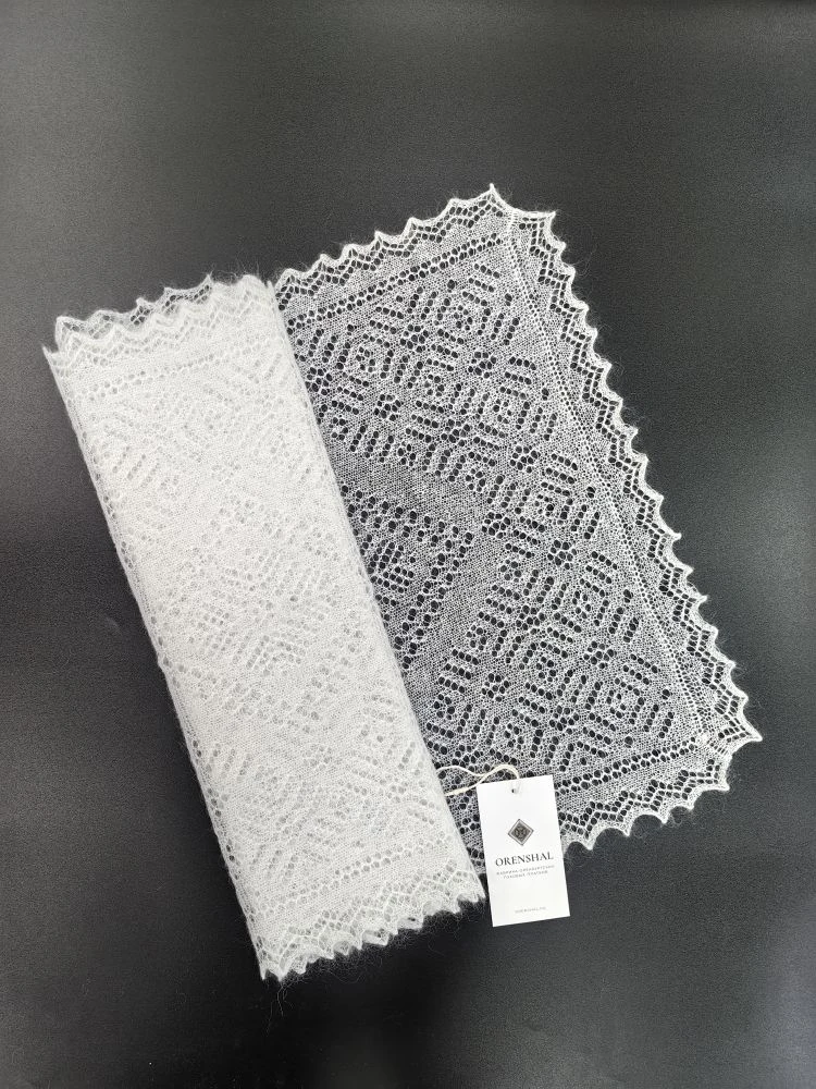 Этот легкий невесомый шарф будет вас согревать, несмотря на свой маленький размер, так как имеет в составе большое содержание пуха. Изделие полностью ажурное - украшено кружевными узорами, напоминающими морозные рисунки на стекле. Подойдет не только для ношения в зимний сезон, но также очень пригодится для холодной весны и осени. В прохладном помещении можно дополнять образы, небрежно накинув на шею или зафиксировав красивой брошью.