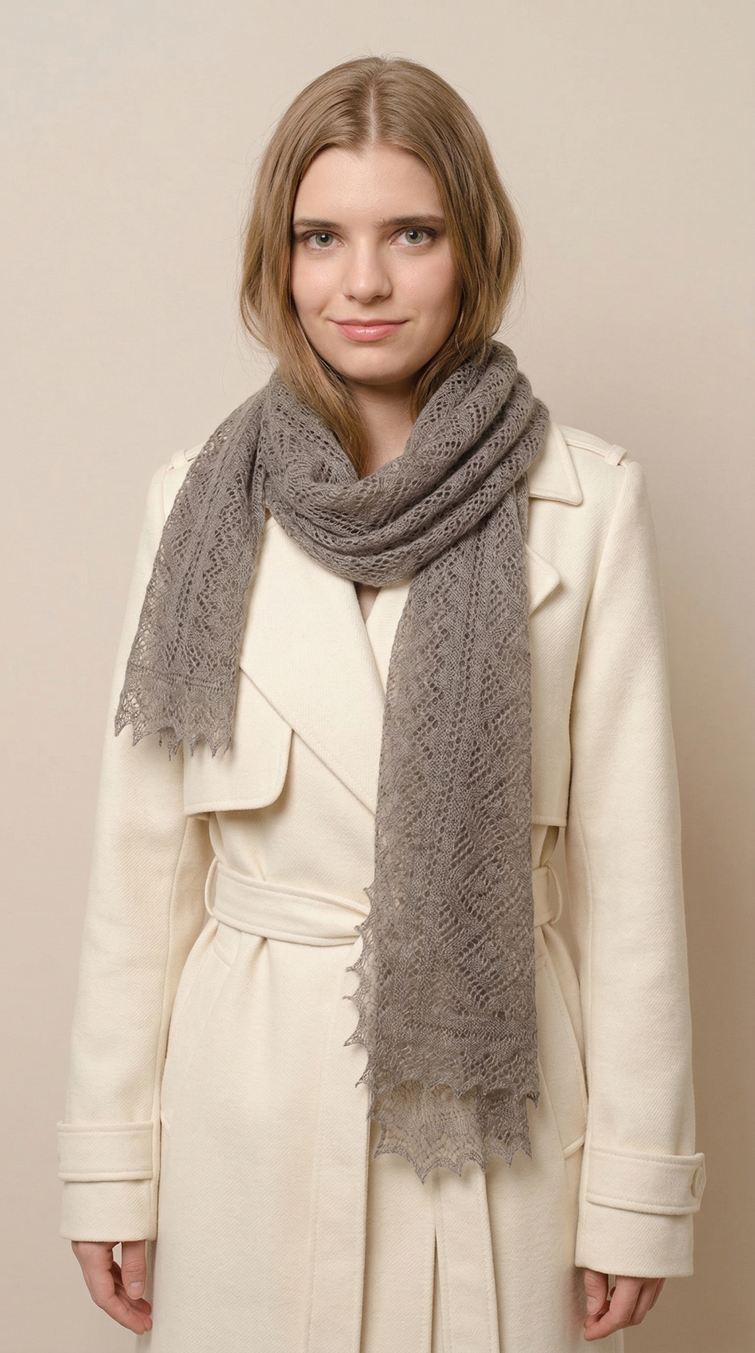 Тоненький невесомый ажурный шарфик очень деликатно и нежно смотрится на шее. Особенно подойдет для тех, кто не любит объемные большие шарфы. Несмотря на свою миниатюрность, изделие очень теплое. Удобно носить под верхней одеждой вокруг шеи либо проложить в области груди. Вы не почувствуете веса изделия, а только его согревающие свойства! Шарф в сером цвете очень приятный, неброский и практичный. Подойдет к любому цвету одежды и станет незаменимым аксессуаром