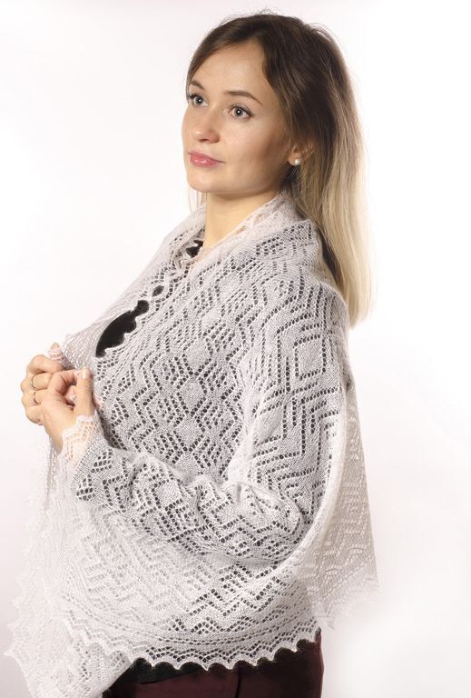Конечно же, самый востребованный цвет в ассортименте оренбургского платка - это белый. Белый цвет символизирует чистоту.Те, кто другим тонам предпочитает чистый белый, обычно отличаются аккуратностью во всем. Они осторожны и проницательны, критичны и несколько суетливы. Белый цвет - классика наших изделий. Палантин среднего размера, очень нежный , воздушный. Использовать этот размер можно на плечах, на голове и, конечно в роли шарфа на шею.