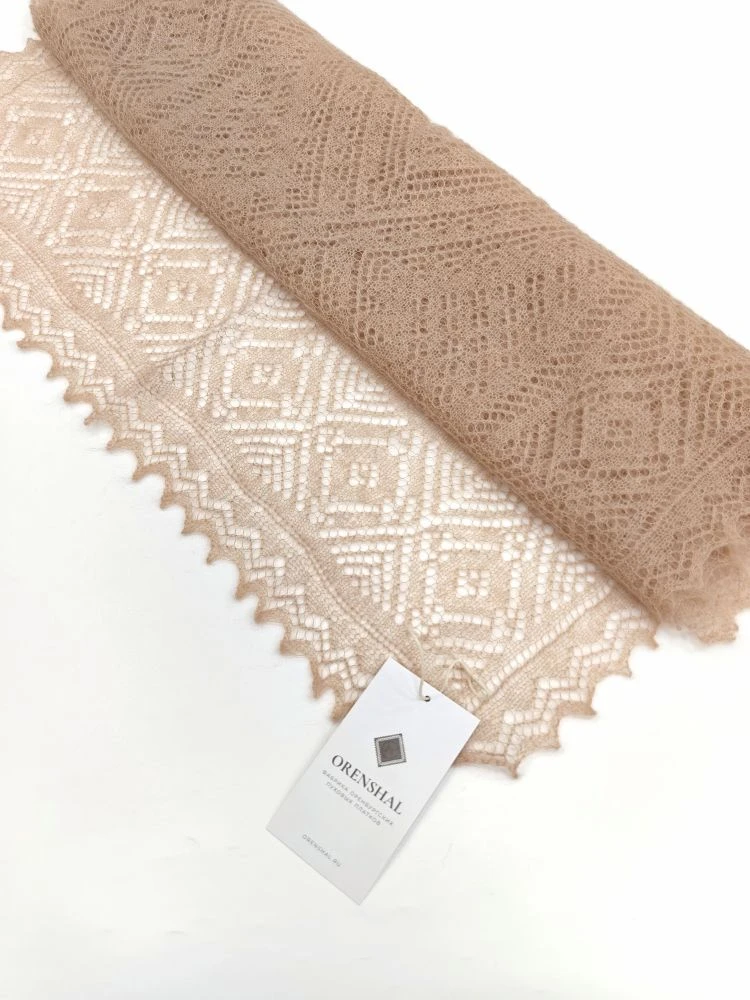 Оренбургский пуховый палантин А14060-29 бежевый