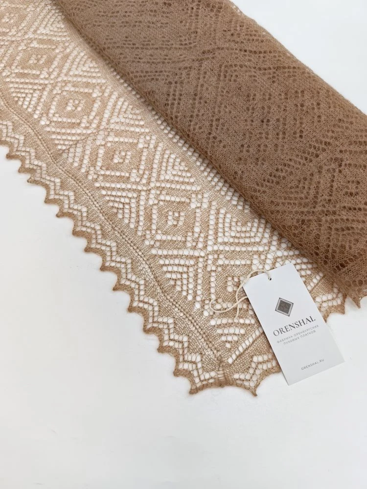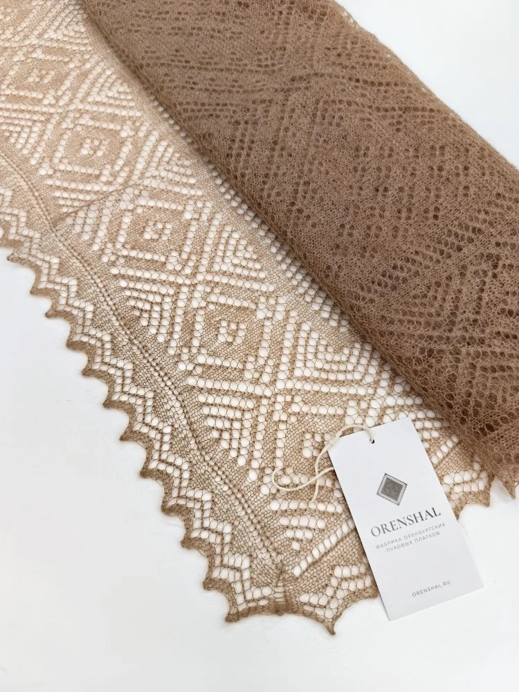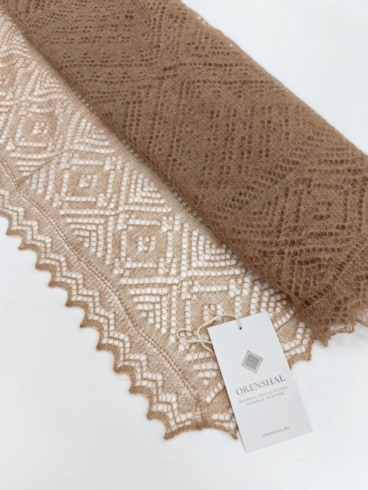 Оренбургский пуховый палантин А14060-08 темно-бежевый