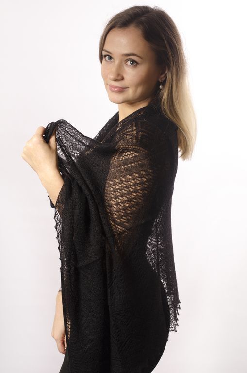 Этот пуховый ажурный палантин очень порадует поклонниц черного! Ведь черный цвет универсальный, стильный,благородный и немного строгий. Роскошная черная паутинка прямоугольной формы - самая элегантная и утонченная. Ее часто приобретают как дополнение к вечернему образу. Она эффектно подчеркивает силуэт, придает стройность, а нежное кружево - изысканность. В то же время палантин удобно использовать в качестве шарфа,делая объемную воздушную намотку.Изделие натуральное и качественное. Имеет внушительное содержание козьего пуха отчего очень теплое и дышащее.