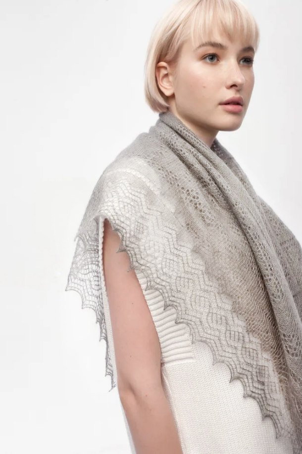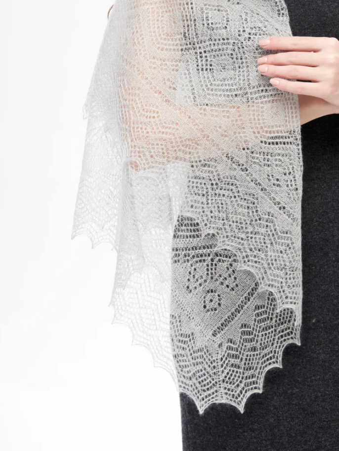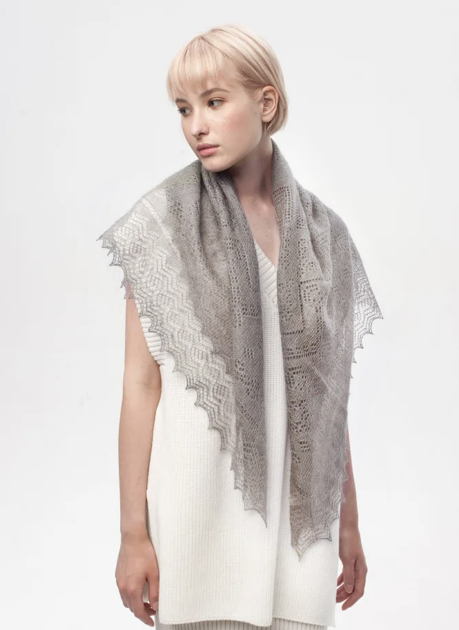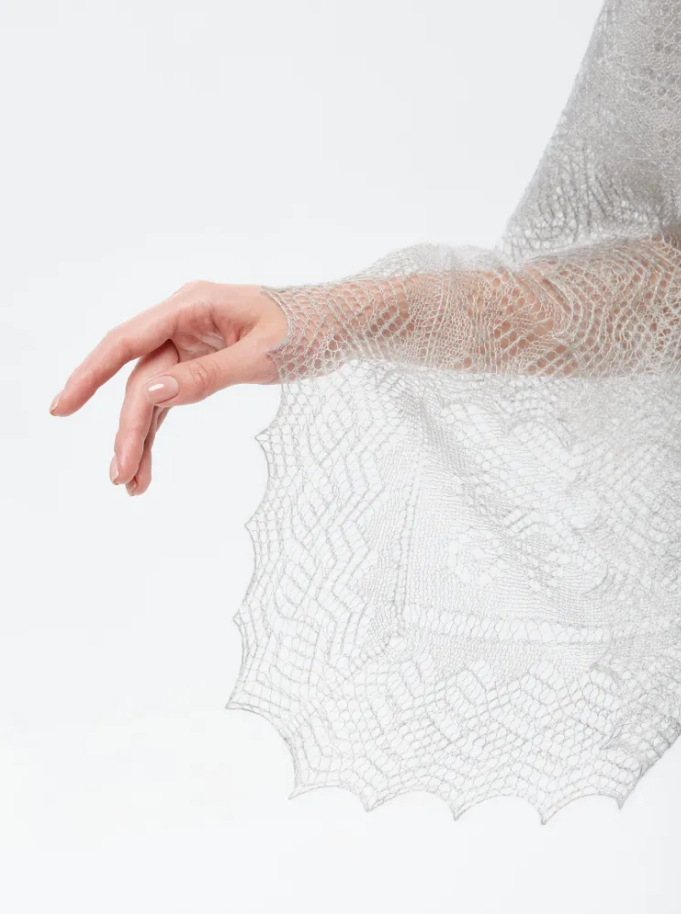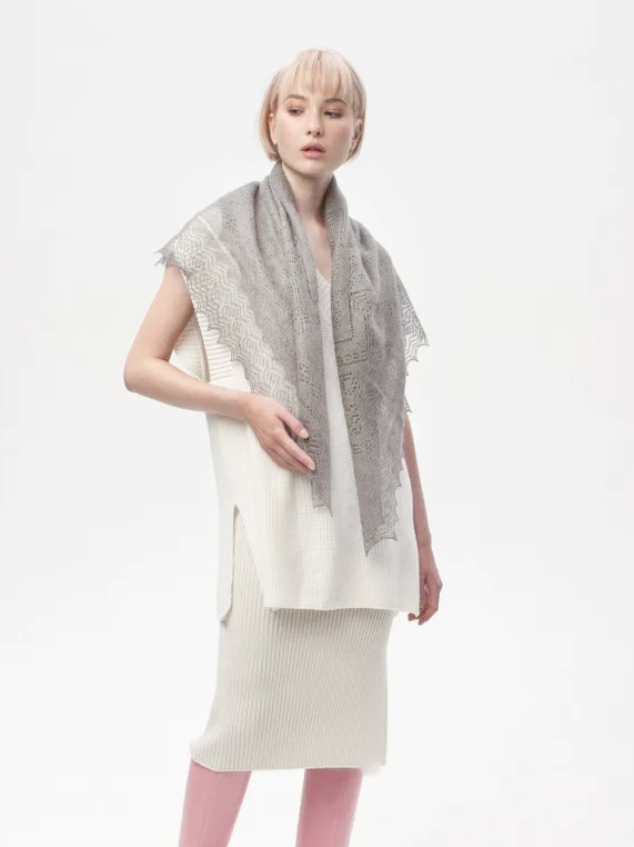 Оренбургский пуховый платок с шелком АШ100-03 серый