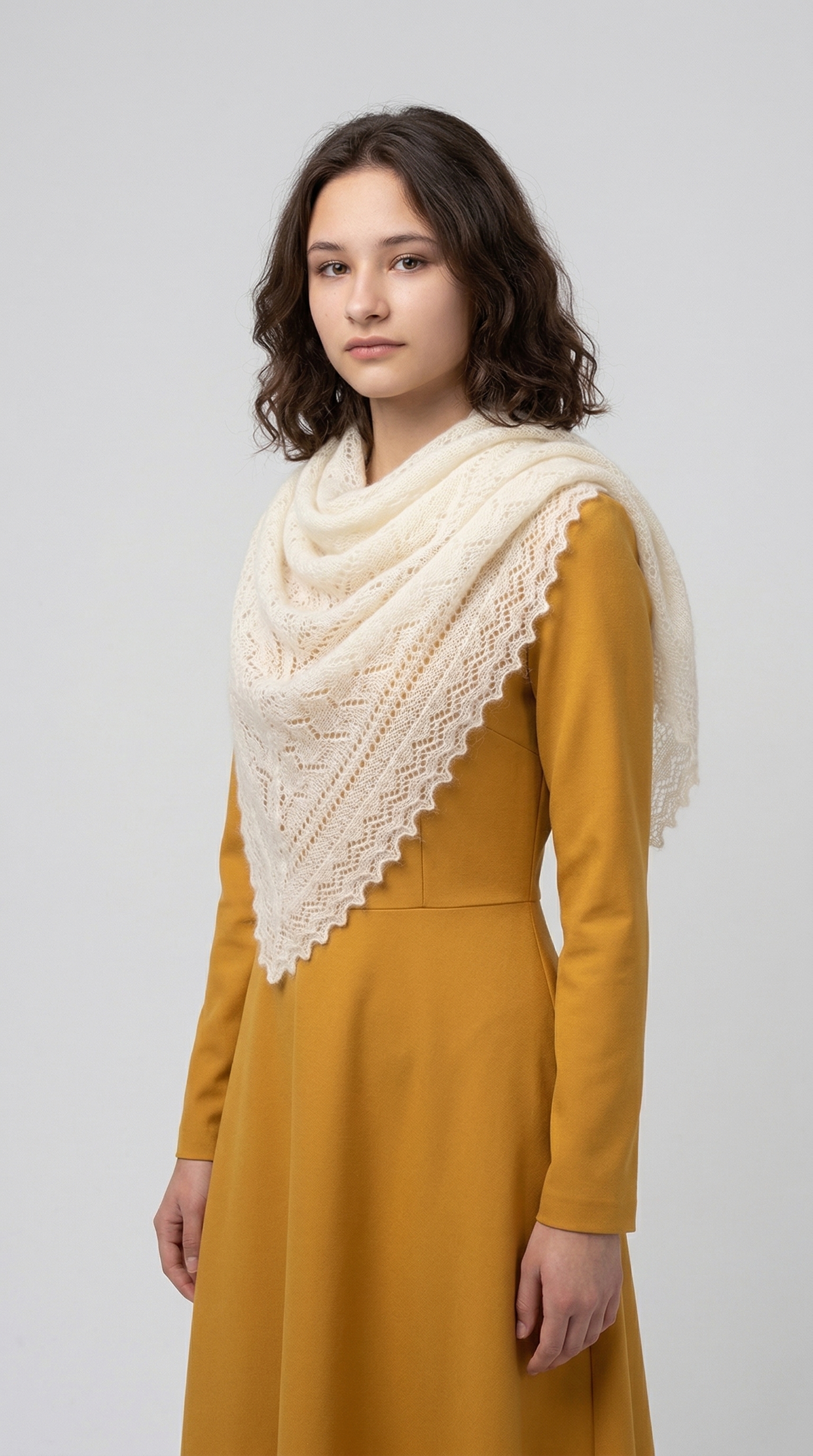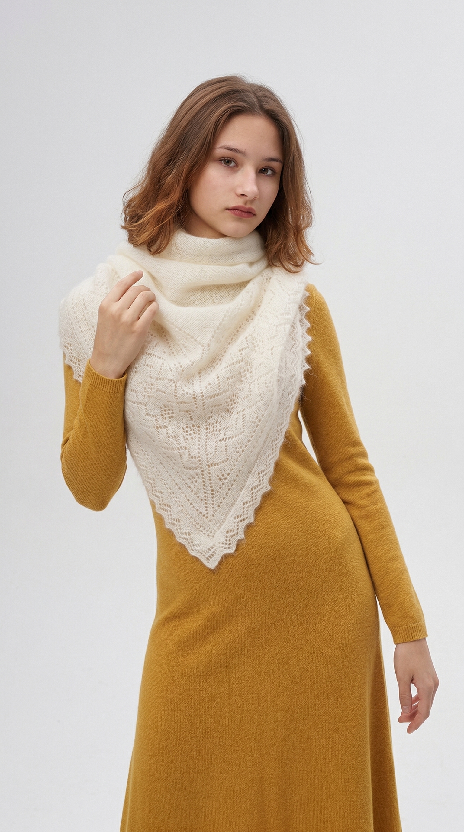 Оренбургский пуховый платок П2-100-01 белый отбеленный
