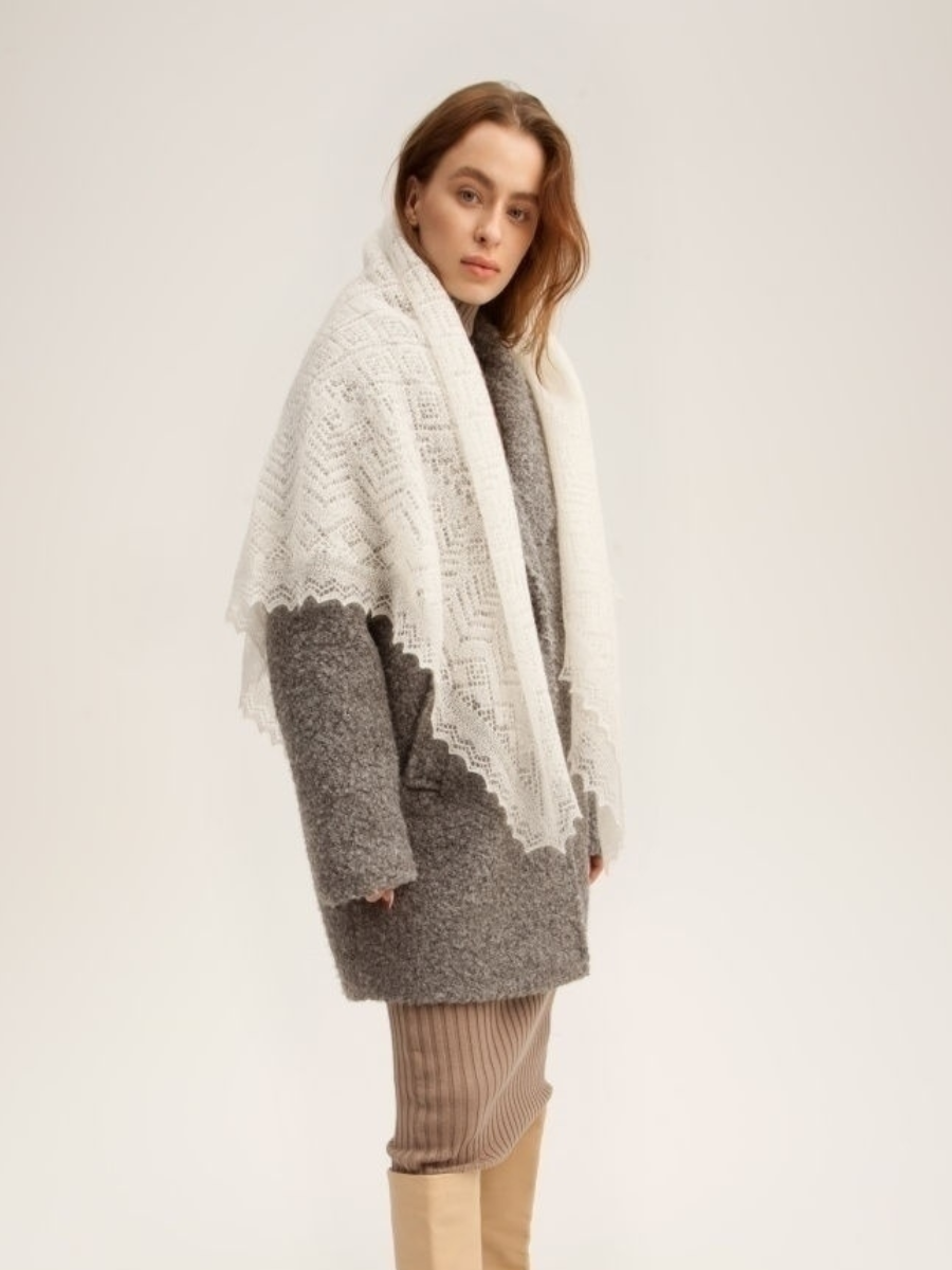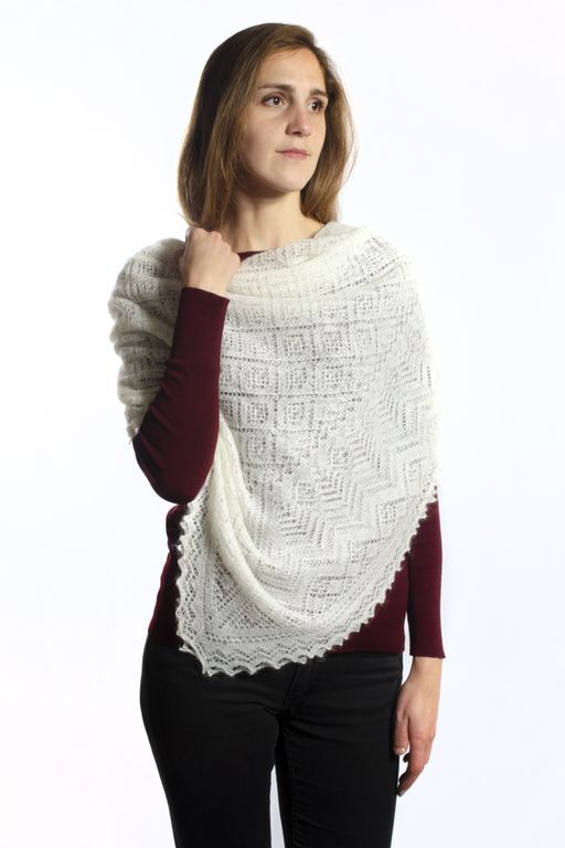 Экрю – это бежево-желтый оттенок с теплым подтоном. Визуально оттенок экрю напоминает кремовый и айвори. Он состоит из желтого, серого, белого и примеси красного.Также его называют цвет шампань.Ассоциации с шампанским автоматически делают оттенок праздничным. Именно поэтому оформление свадьбы в цвете шампань – явление распространенное. Оттенок получил репутацию благородного и аристократичного.Ажурная пуховая паутинка подойдет как для повседневной носки, так и для праздничных мероприятий.Этого размера достаточно, чтоб повязать на голову или накинуть на плечи.