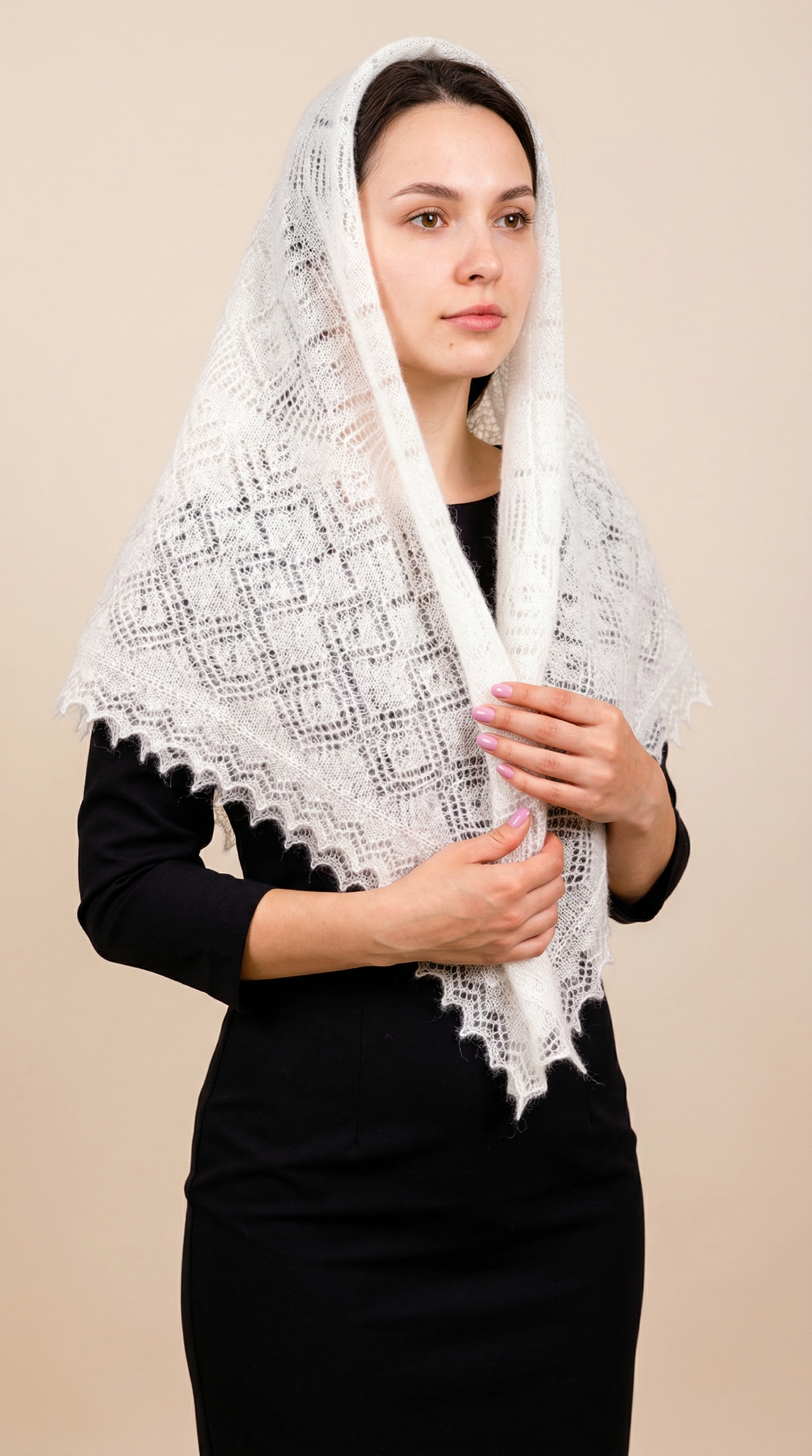 Данная оренбургская пуховая паутинка является малым нашейным платком. Имеет высокое содержание натурального козьего пуха в составе, за счет чего является теплым и легким. Цвет платка “экрю” “является классическим, поскольку таким цветом обладает натуральный козий пух. Выпускается в разных геометрических рисунках.