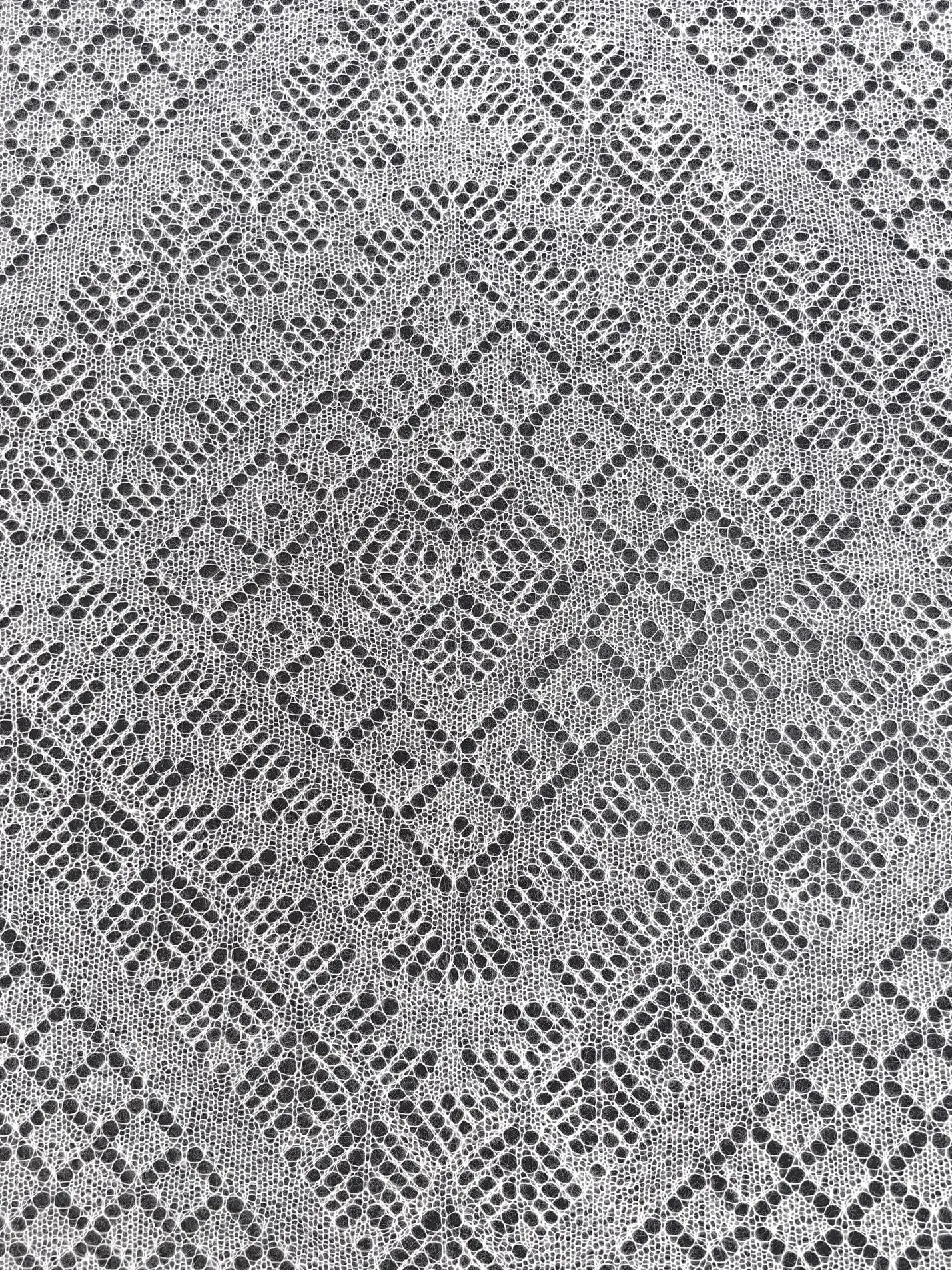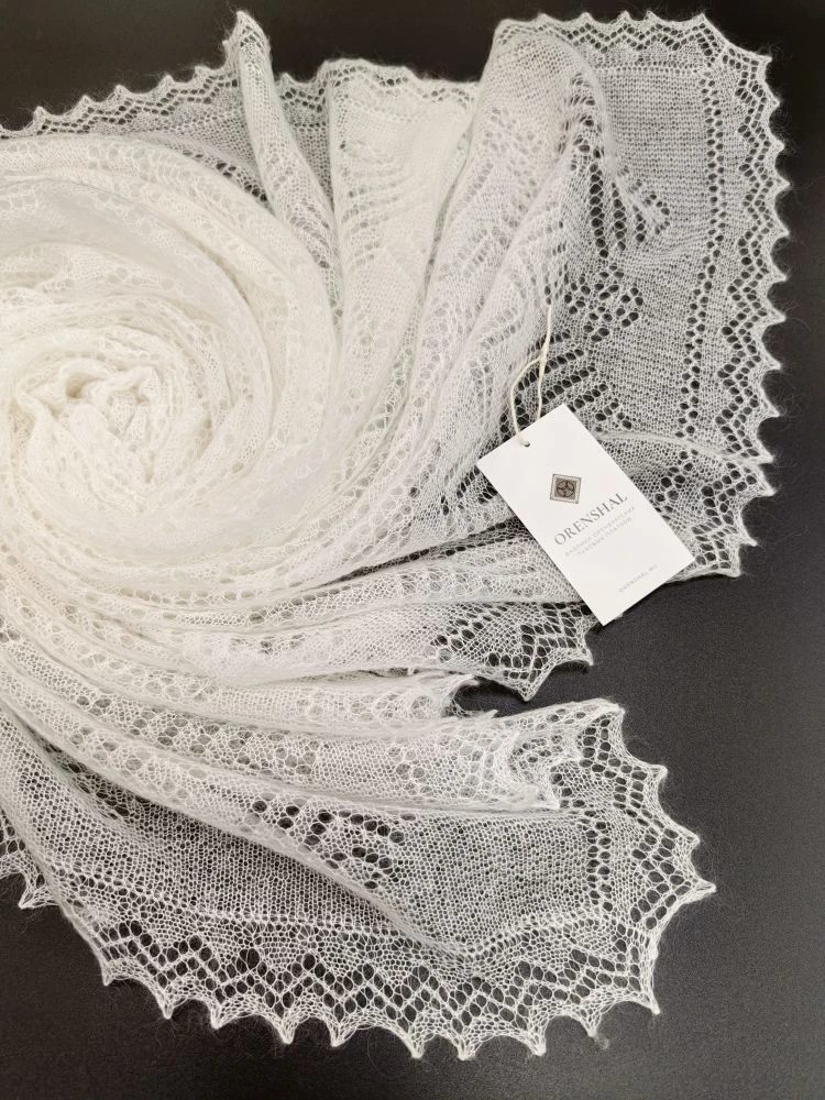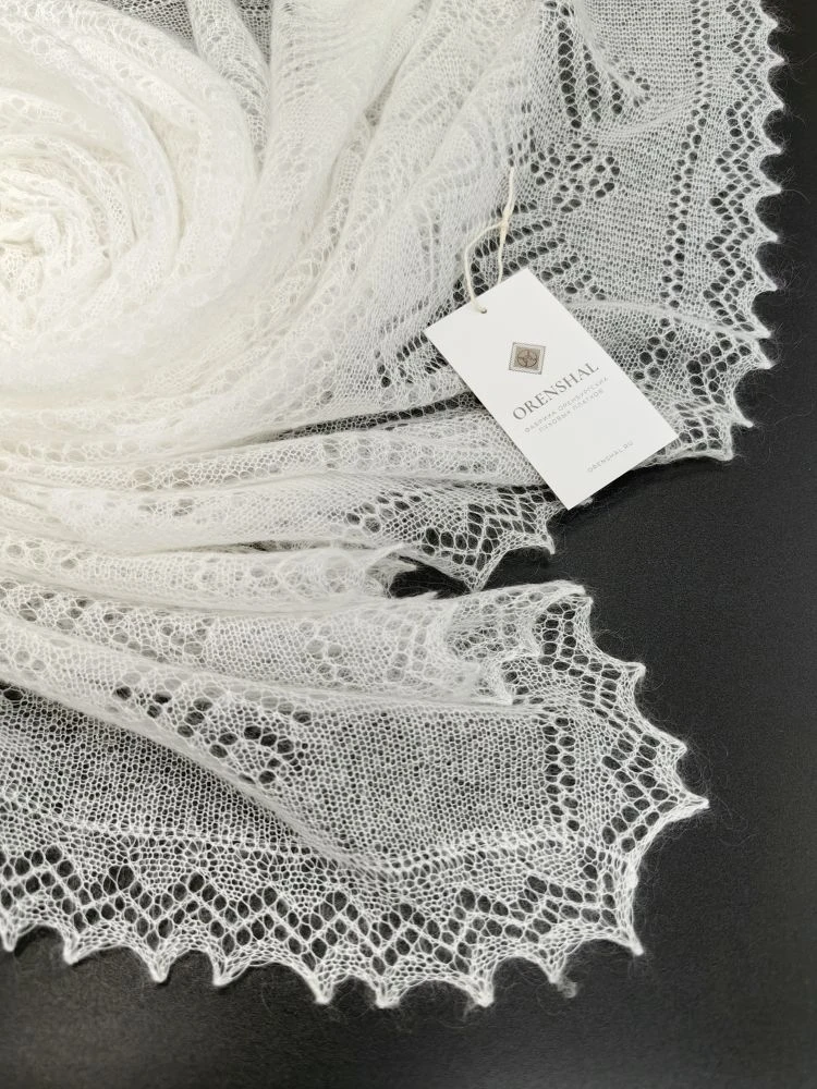 Легкость и ажурность впечатляют с учетом того, что связан этот платок не руками, а машиной.Самый покупаемый цвет и размер. Именно эти паутинки можно пропустить через кольцо, начиная от самого маленького размера и заканчивая самыми большими изделиями.