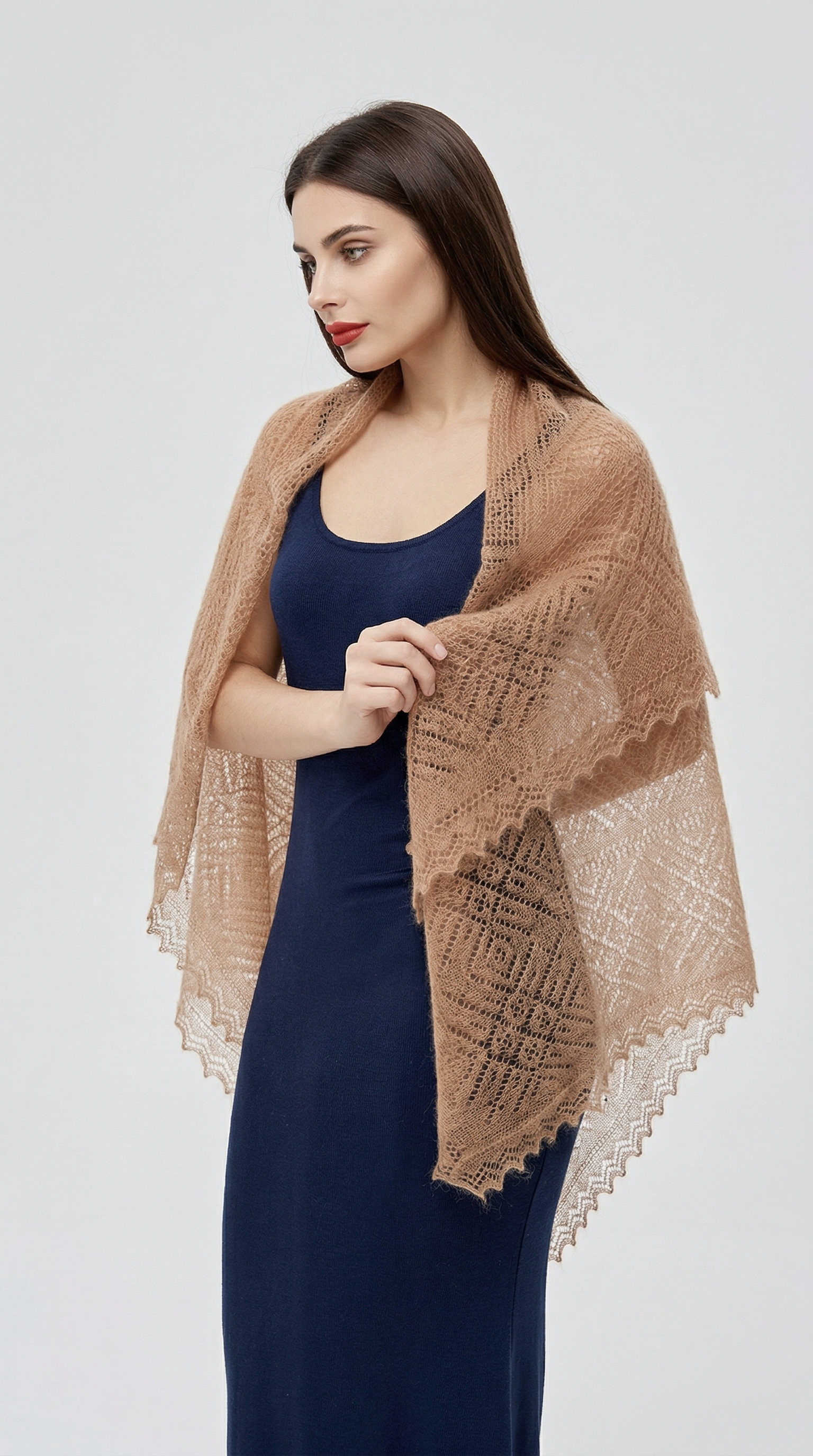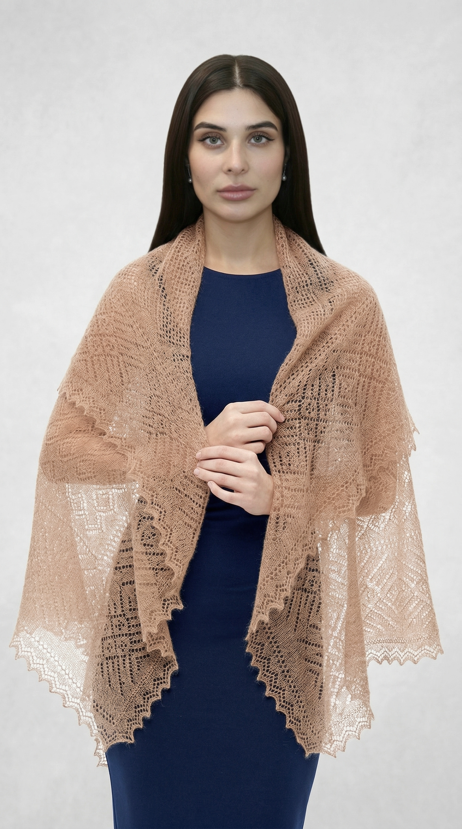 Оренбургский пуховый платок-паутинка А120-08 темно-бежевый