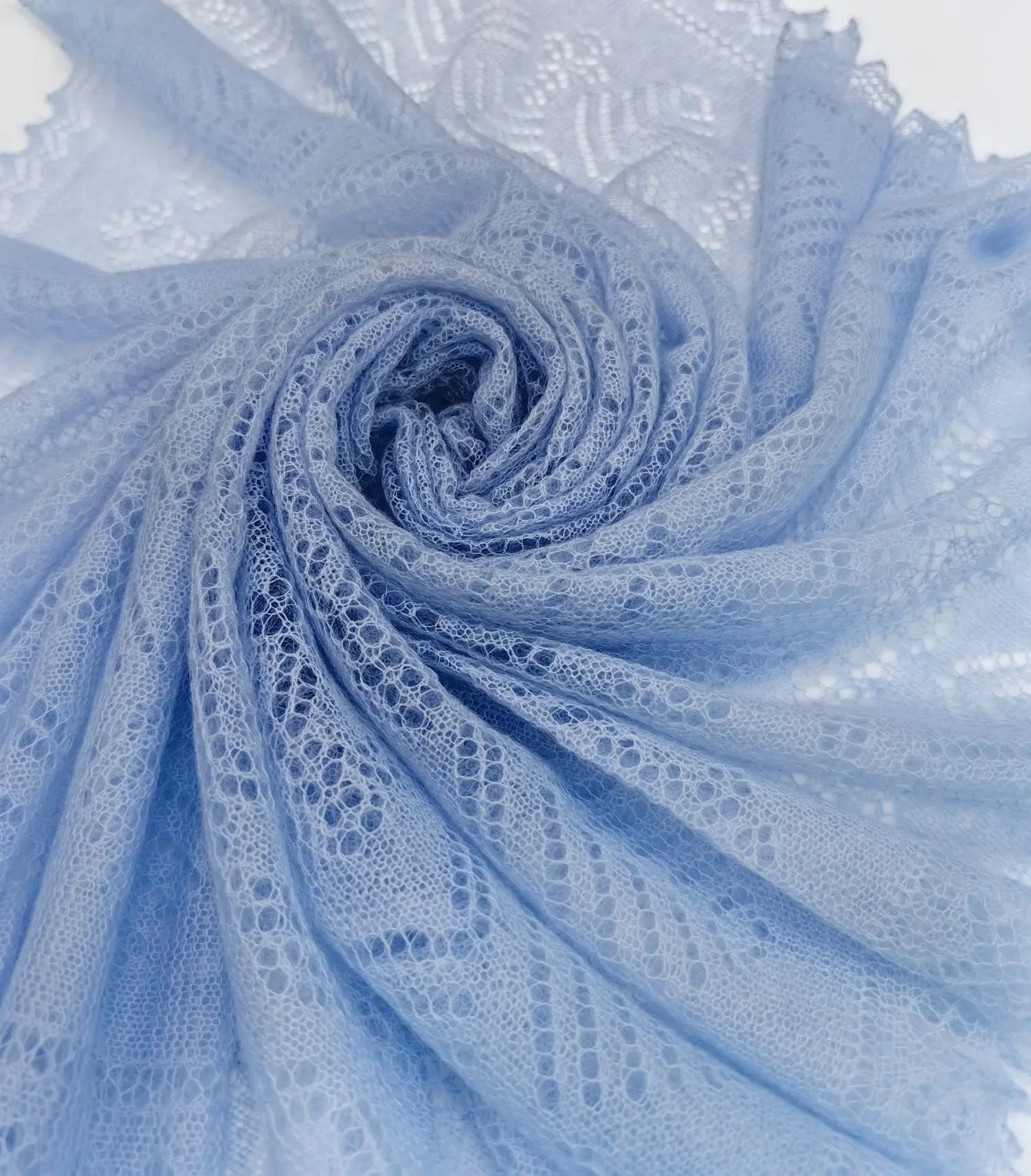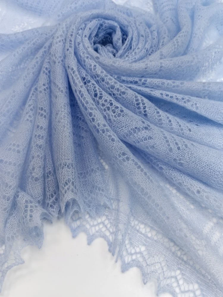 Это ажурное изделие имеет короткий ворс. Хорошо будет смотреться с одеждой светлых тонов (молочной, бежевой,серой) и темных (черной, коричневой,синей).