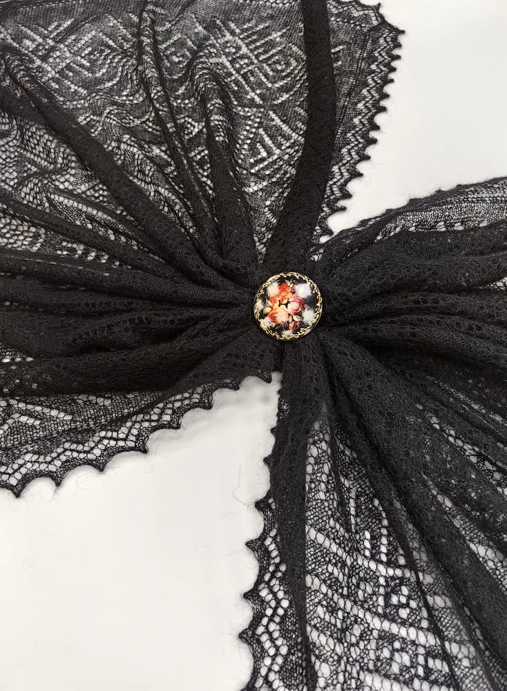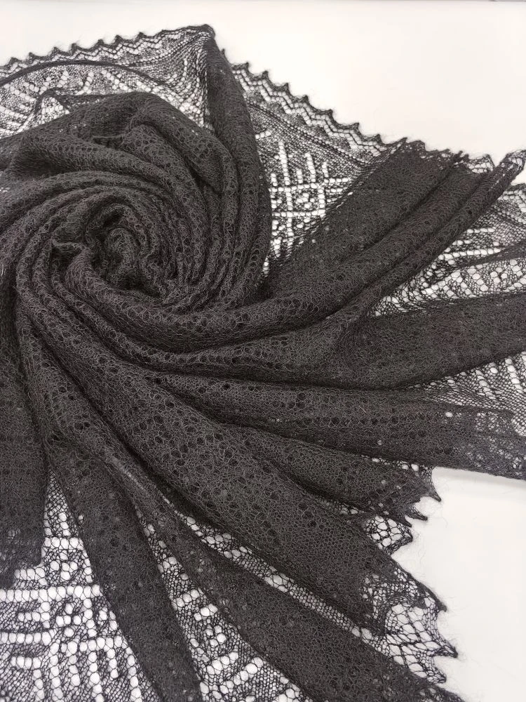 Оренбургский пуховый платок-паутинка А120-07 черный