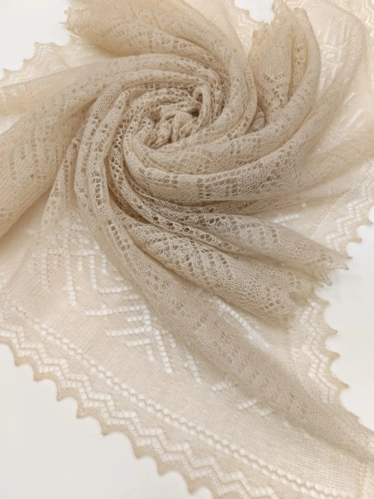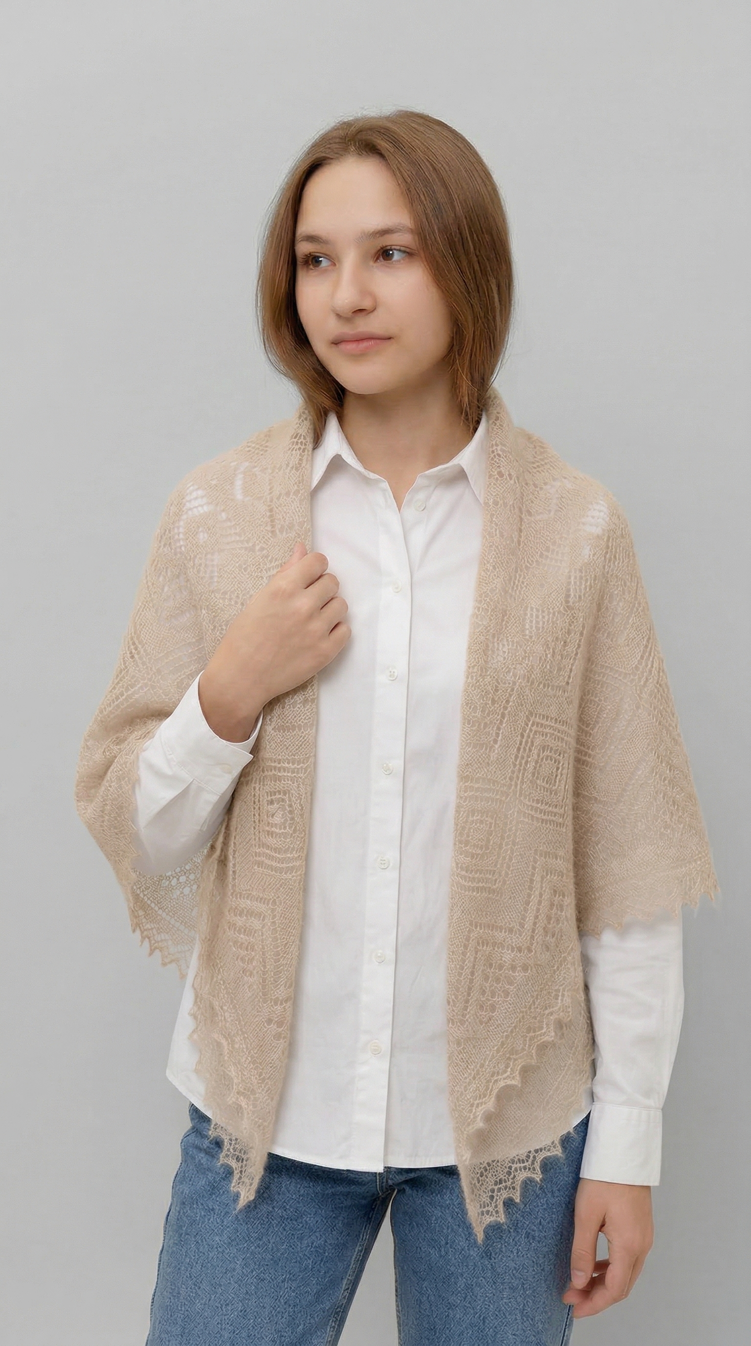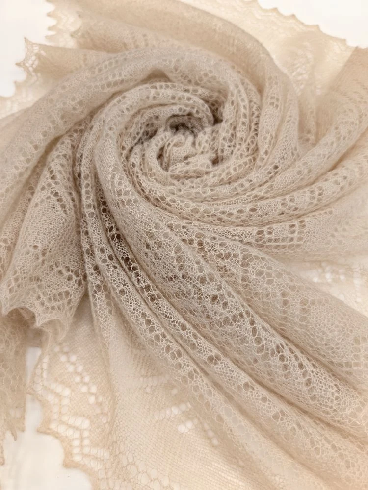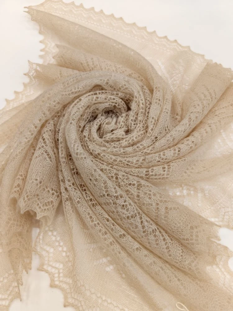Оренбургский пуховый платок-паутинка А120-31 светло-бежевый
