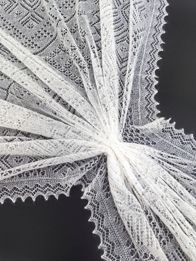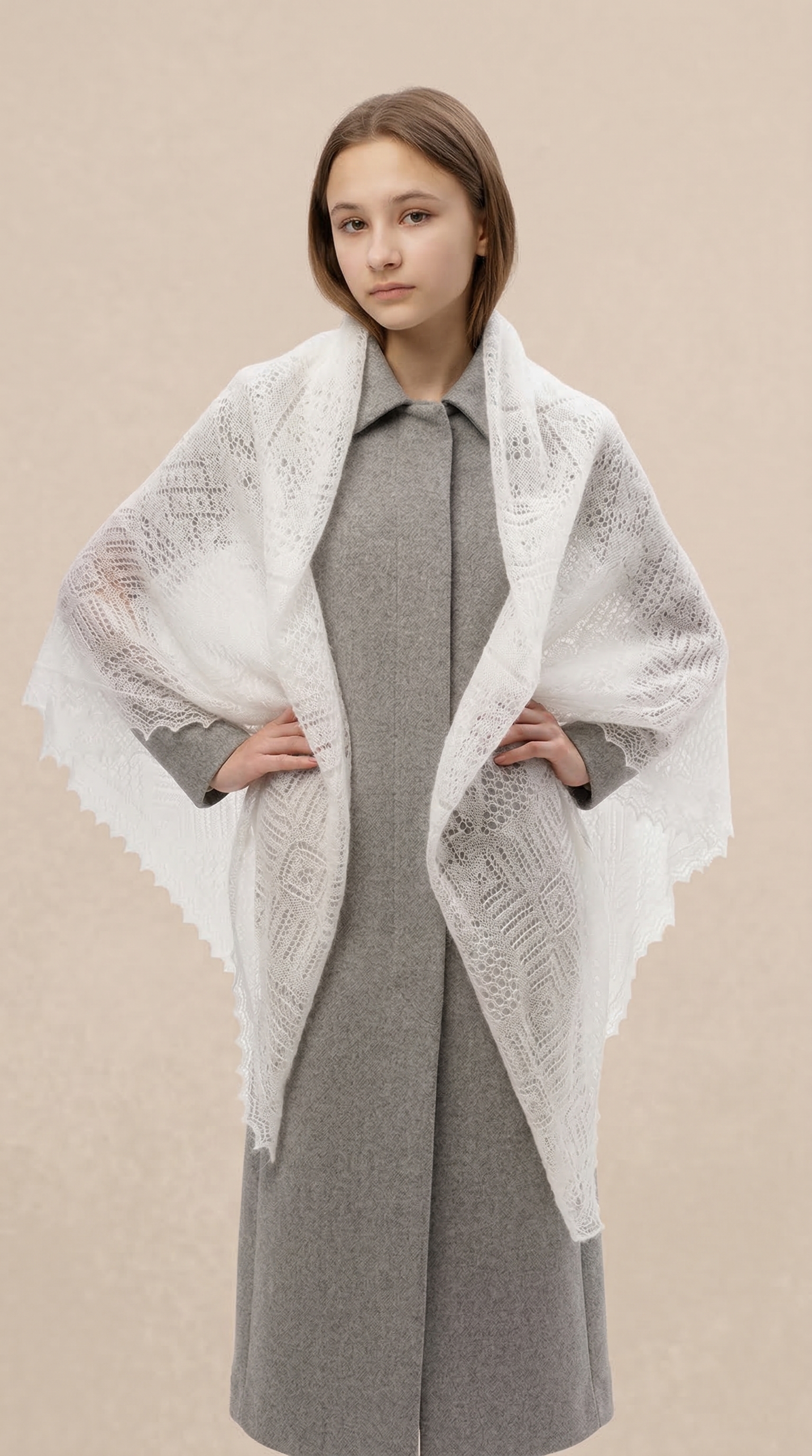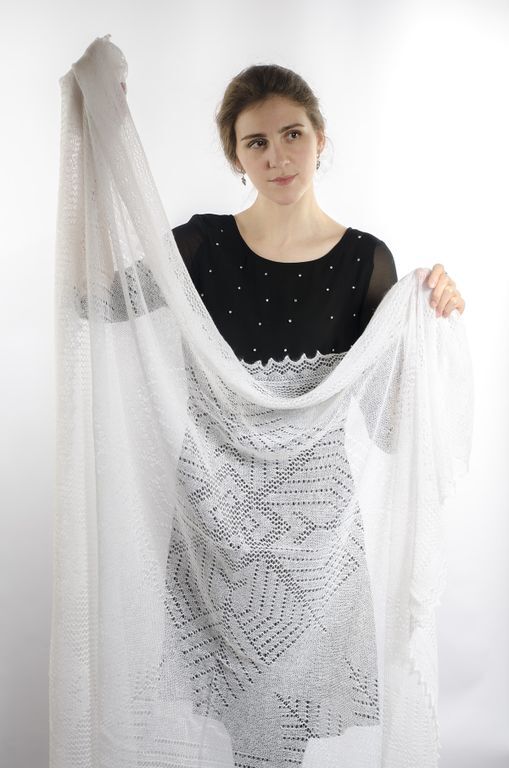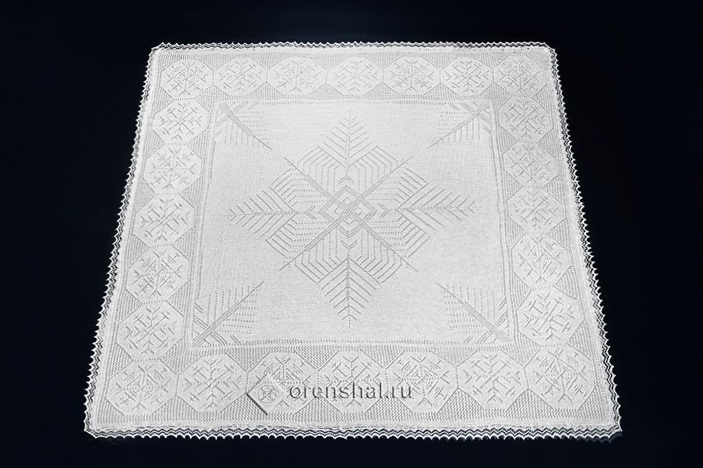 Оренбургский пуховый платок-паутинка А160-01 белый отбеленный