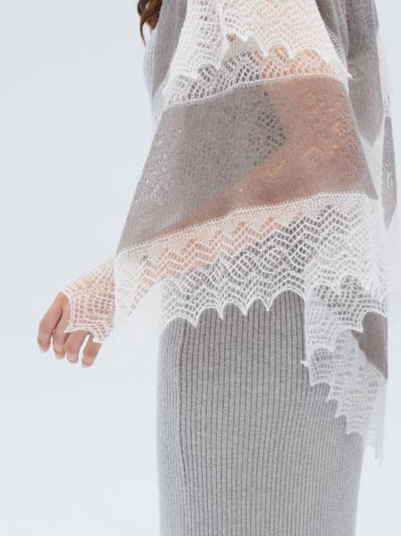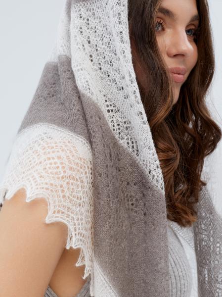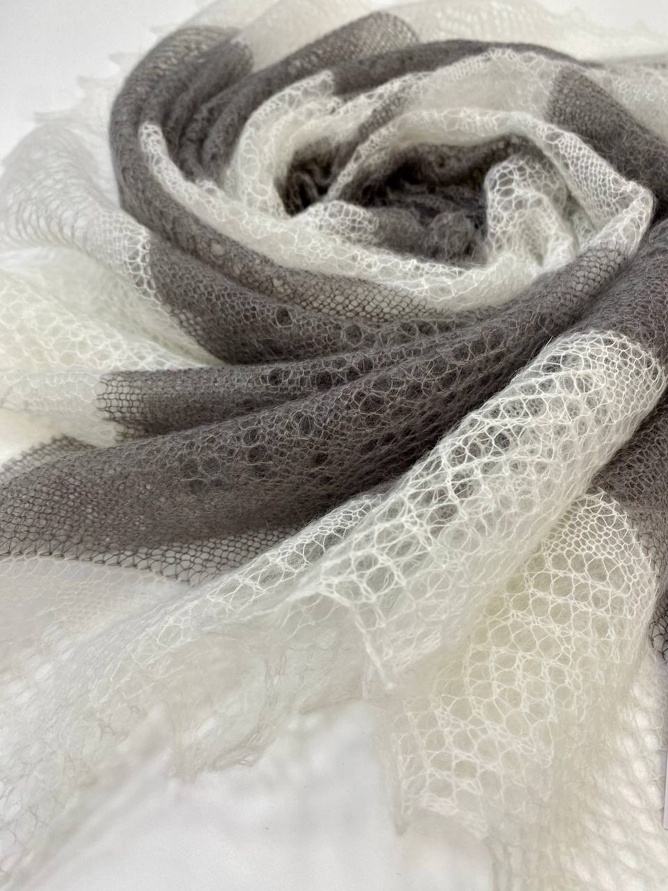 Небольшой шейный пуховый платок в комбинированном базовом серо-белом цвете.Эти 2 классических оттенка Оренбургского платка превосходно дополняют друг друга. Соединенные 2 традиционных цвета, беспроигрышный вариант подарка.