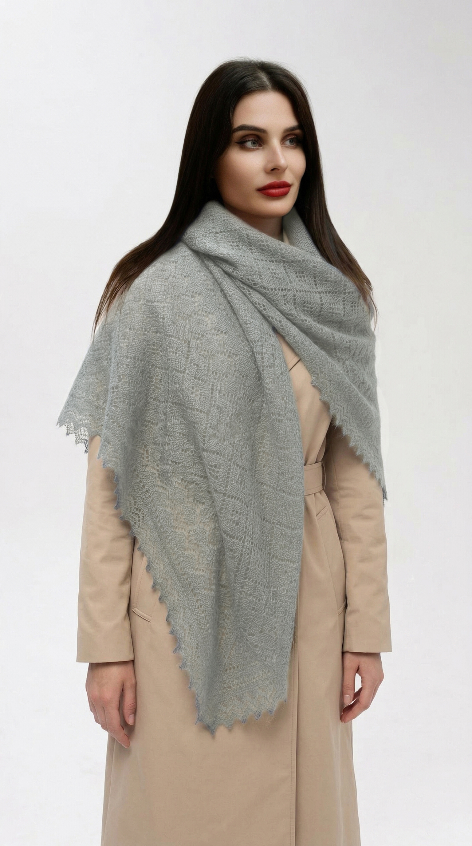 Оренбургский пуховый платок с шелком АШ120-03 серый