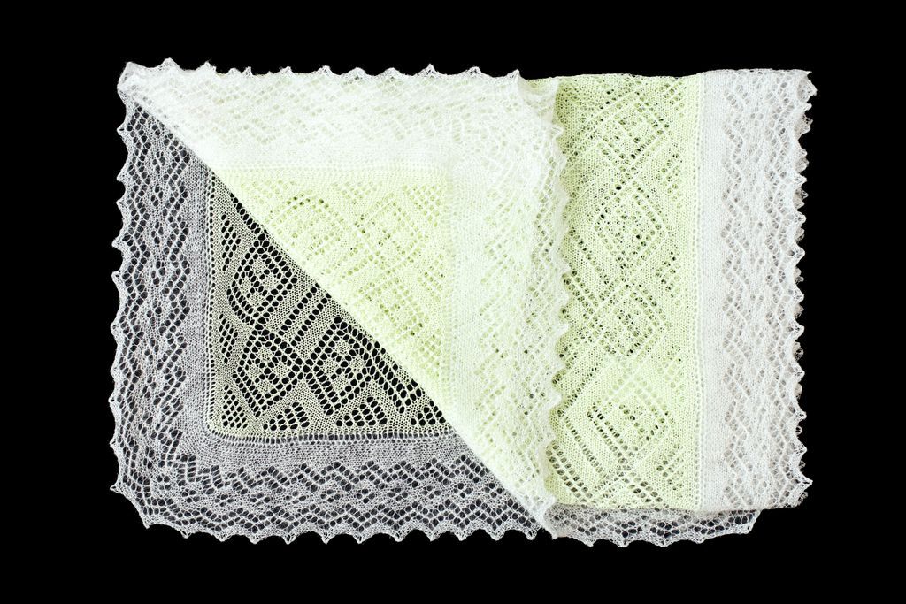 Оренбургский ажурный летний палантин МА16070-12/02 зеленый/экрю