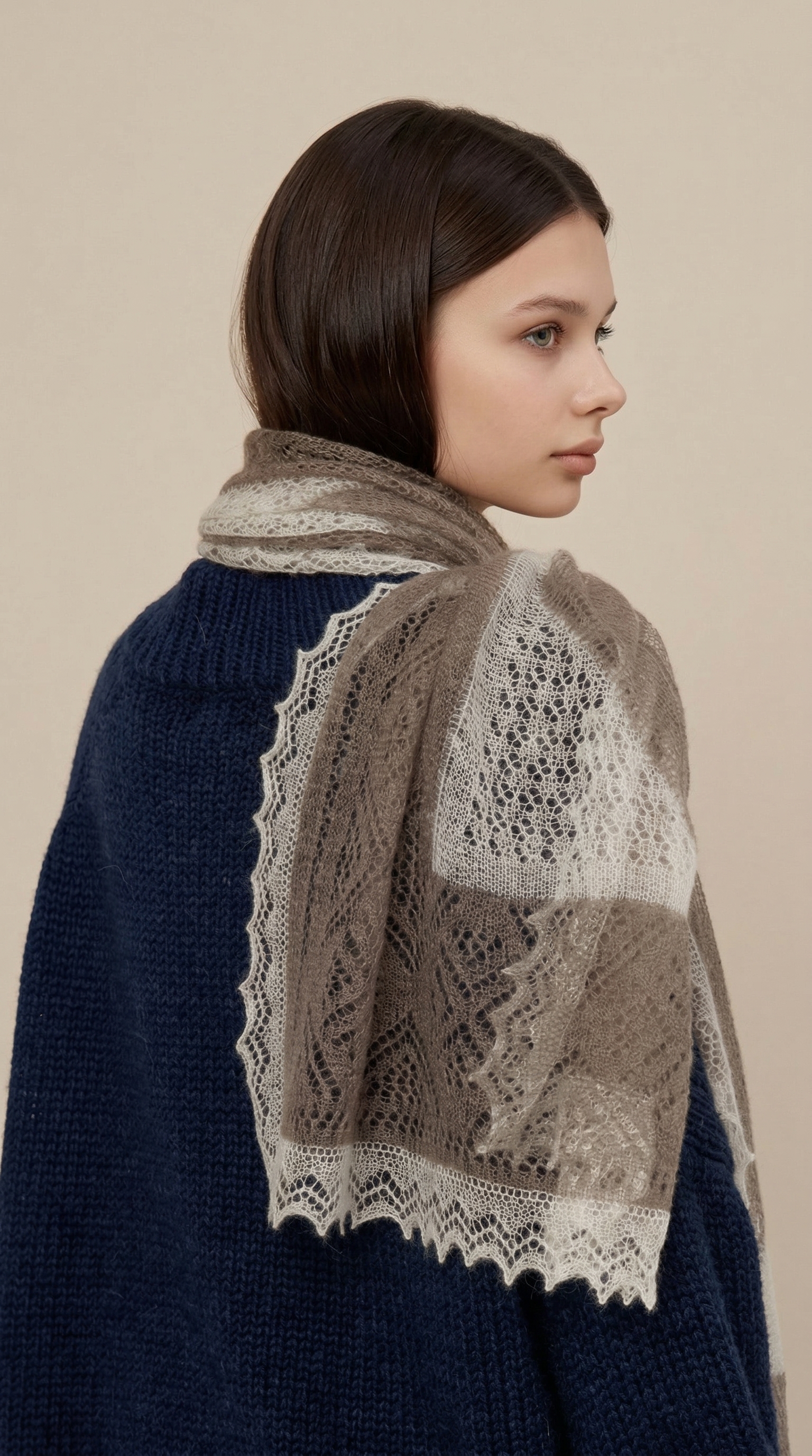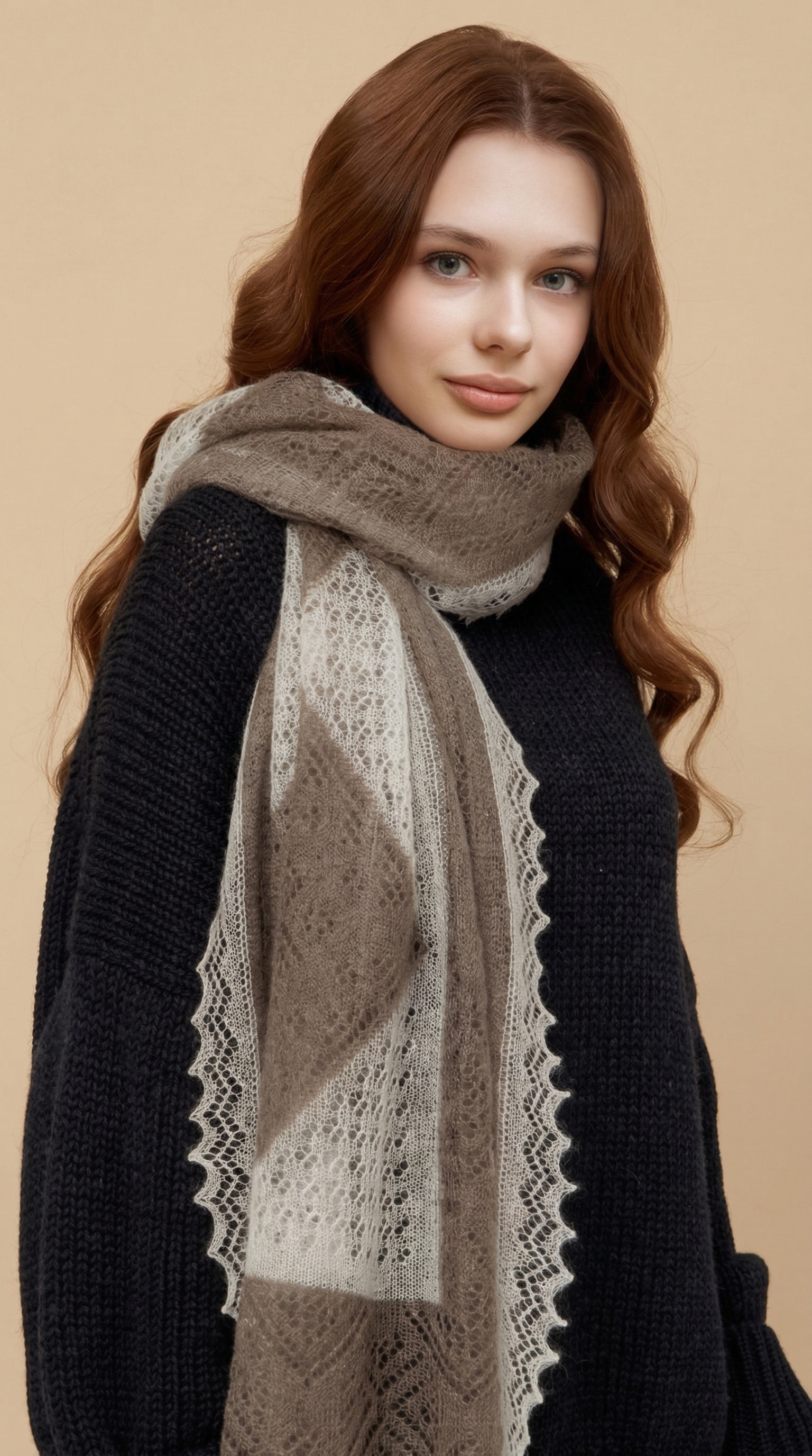 Оренбургский пуховый палантин двухцветный АИ16070-03/01 серый/белый