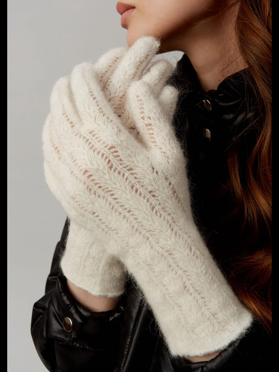 Ажурные пуховые перчатки выполнены из козьего пуха. В состав перчаток входит эластан, за счет чего эта модель подойдет на любую женскую руку. В перчатках выполнен очень ажурный рисунок, который никак не влияет на тепло этой модели. Легкие,мягкие и очень теплые перчатки вы можете приобрести в разных расцветках.