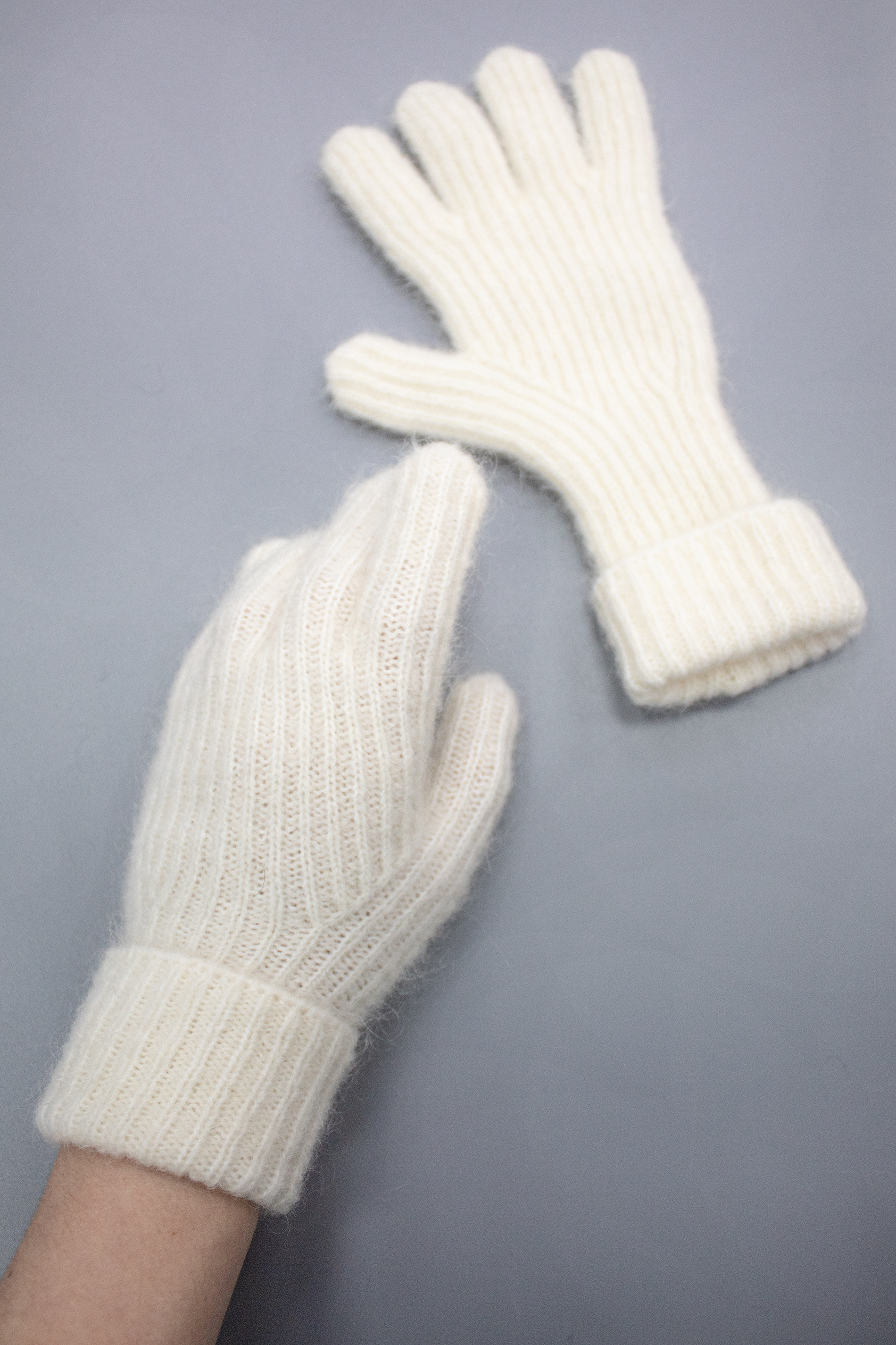 Чтобы подобрать размер перчаток, измерьте обхват ладони в самой широкой части без учёта большого пальца — полученное значение в сантиметрах и будет вашим размером. Однослойные вязаные перчатки без подклада, с удлиненной манжетой, можно носить как с отворотом, так и в развернутом виде.