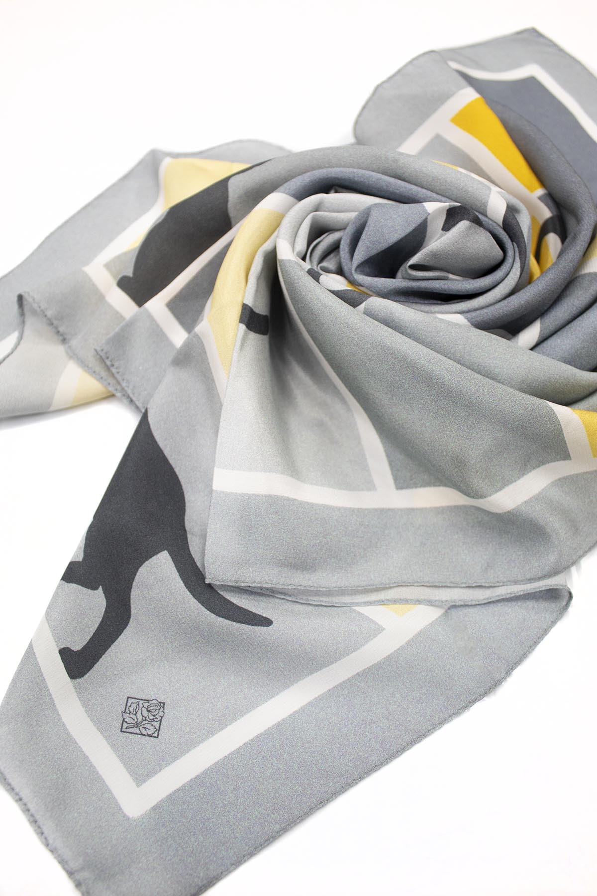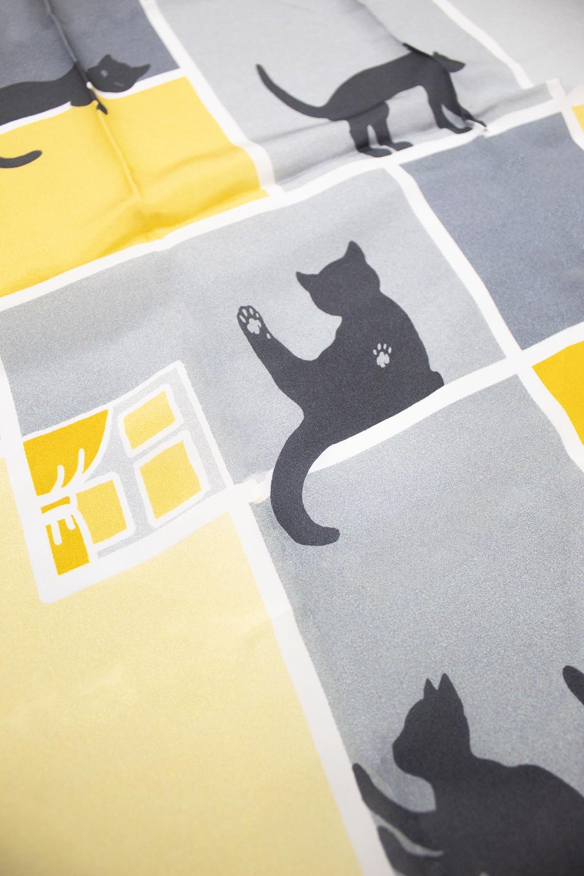 Задорные тени кошек, где каждая нашла свое место на крышах и внутри зданий, умиляет с первой секунды! Сочетание желтого и серых оттенков основного фона, разбитых на прямоугольные формы образуют затейливую геометрию. Данный платок подчеркнет вашу индивидуальность и станет изюминкой вашего гардероба!