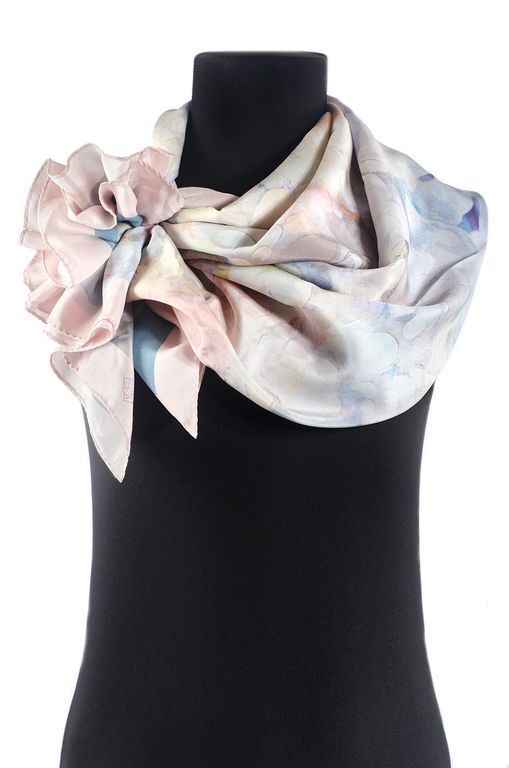 Нежнейший платок с воздушным акварельным рисунком, самый популярный в этой категории. Изысканный, спокойный, он имеет очень красивый розовато-голубой оттенок с более темными переходами. Невесомый и свежий, придает приятную розовинку тону лица. Прекрасно подходит для изысканных вечерних образов, женственных платьев, но и в повседневности выглядит очень уместно. Подчеркнет ваш тонкий вкус и чувство стиля.