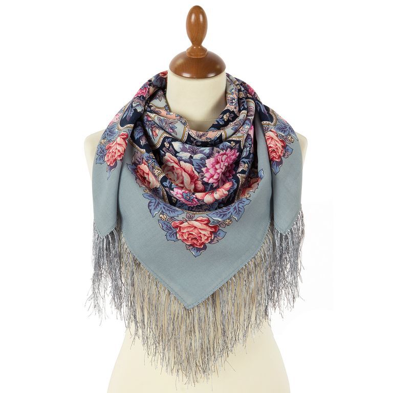 Свежий колорит платка "Гуслицкий край". Рисунок, словно ранней весной, через льдинки пробиваются первые морозные цветы.. Очень спокойные, сдержанные тона: нежные оттенки розового и фиолетового, розы цвета персика, переходящие в песочный, неяркий серо-голубой фон, словно припыленный. Платок, который обязательно должен быть в коллекции, он одновременно освежит и придаст яркости вашему образу!