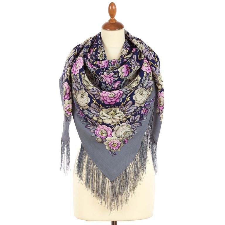 Шерстяной платок, выполненный в холодных сиреневых тонах. Нежные бутоны роз заполняют всё поле рисунка, хороводом сплетаясь в затейливые узоры, а контрастный фиолетовый подтон создаёт ощущение объёма, поэтому рисунок выглядит выразительно и колоритно. Размер платка является универсальным, его можно эффектно намотать на шею, надеть на голову или накинуть на плечи, соорудив пончо при помощи чудо-пуговиц из нашего ассортимента.