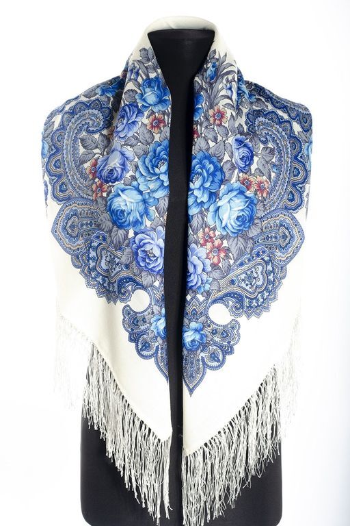 Платок, отвечающий частому запросу покупателей с просьбой подобрать изделие в цветовом сочетании “под гжель”. Белый фон раскрывает богатство этого рисунка в полной мере, голубой узор выглядит ярко и объемно, нарядно и свежо. Платок отлично сочетается как с платьями, так и с джинсами, а 100% натуральная шерсть отлично согревает и защищает от ветра.