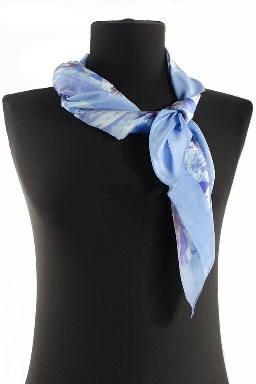 Рисунок - словно масляными красками расписано полотно платочка. Деликатными взмахами кисти - появился на свет этот очаровательный малыш в небесном цвете. Платок универсален за счёт своего размытого и не четкого рисунка, в намотке он светился нежнейшими оттенками голубого. Но в расправленном виде, возникает картина с цветочными орнаментами! Очень динамичный узор и акцентный цвет придадут свежести и легкости вашему образу.