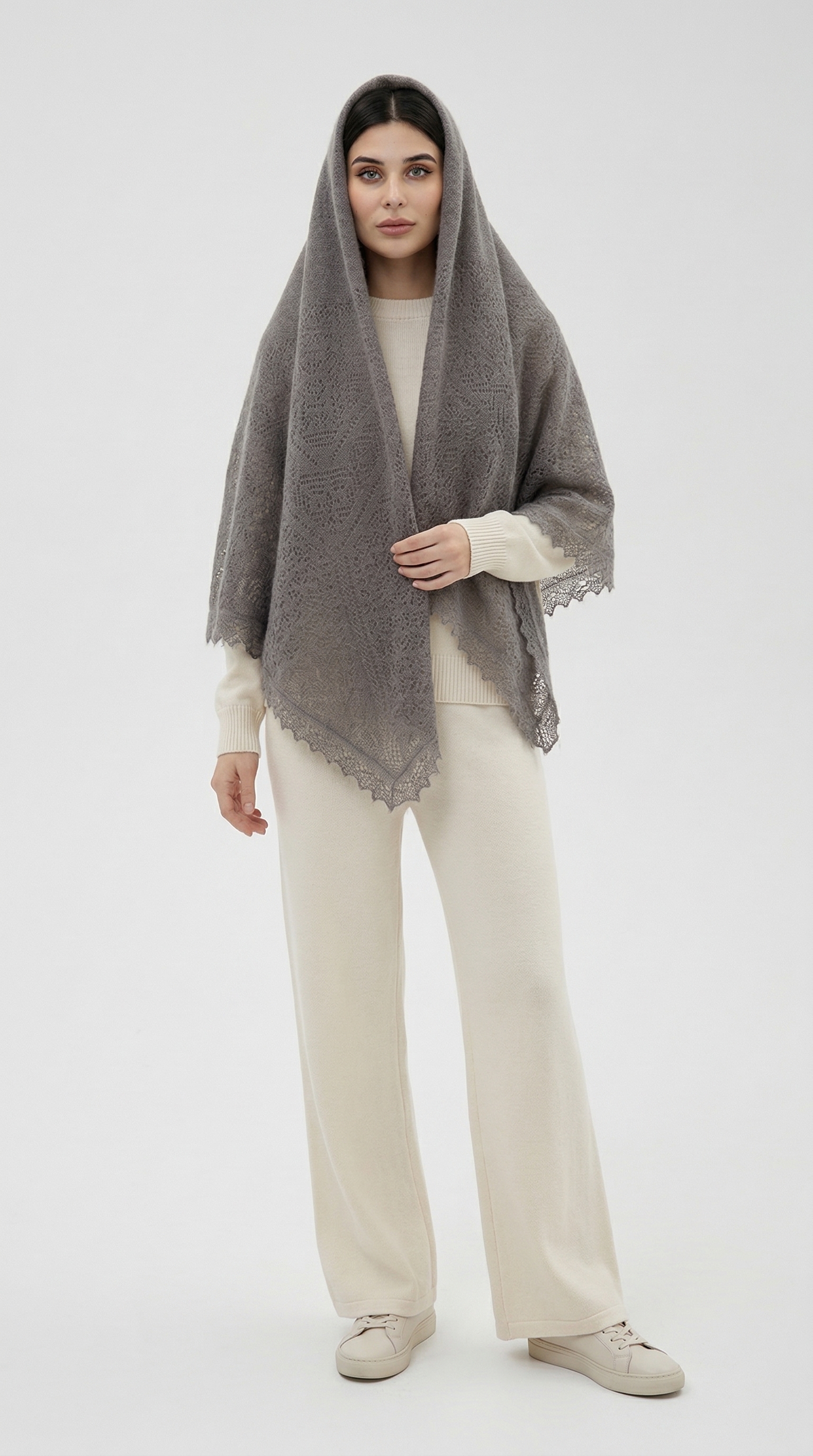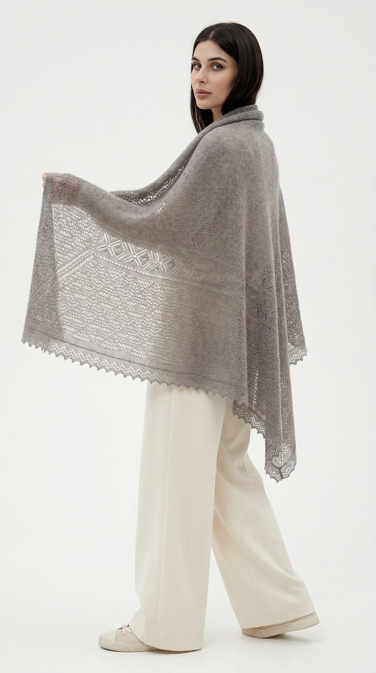 Эта традиционная пуховая шаль в классическом сером цвете имеет комфортный средний размер. Вещь настолько универсальная,что можно сочетать с базовым и даже спортивным гардеробом. Платок мягкий, легкий и очень теплый. К тому же многофункциональный: можно использовать не только как платок, но и как накидку, зафиксировав брошью, а также использовать дома вместо пледа.