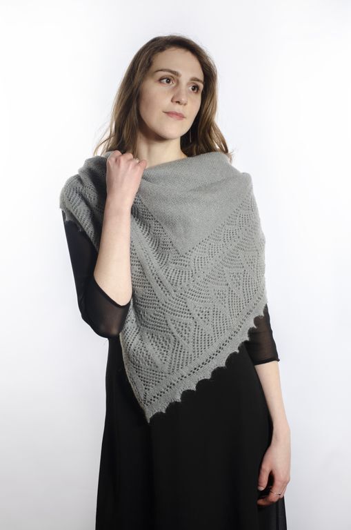Модель этого Оренбургского платка имеет приятный светло-серый оттенок. Этот платок идеально подойдет для ношения на голове, плечах, а также для прогулок ребенка в коляске. За счет его легкости и теплоты заботливые мамы покупают платок, чтоб согреть малыша теплом русского промысла.