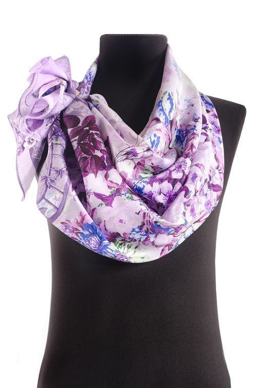Нежные переливы сиренево-фиолетовых оттенков, в флористическом рисунке автора, передают романтичный настрой и воздушное настроение. Лёгкий и ненавязчивый рисунок, холодные тона, тонко расставленные яркие акценты делают этот платок несомненным фаворитом!