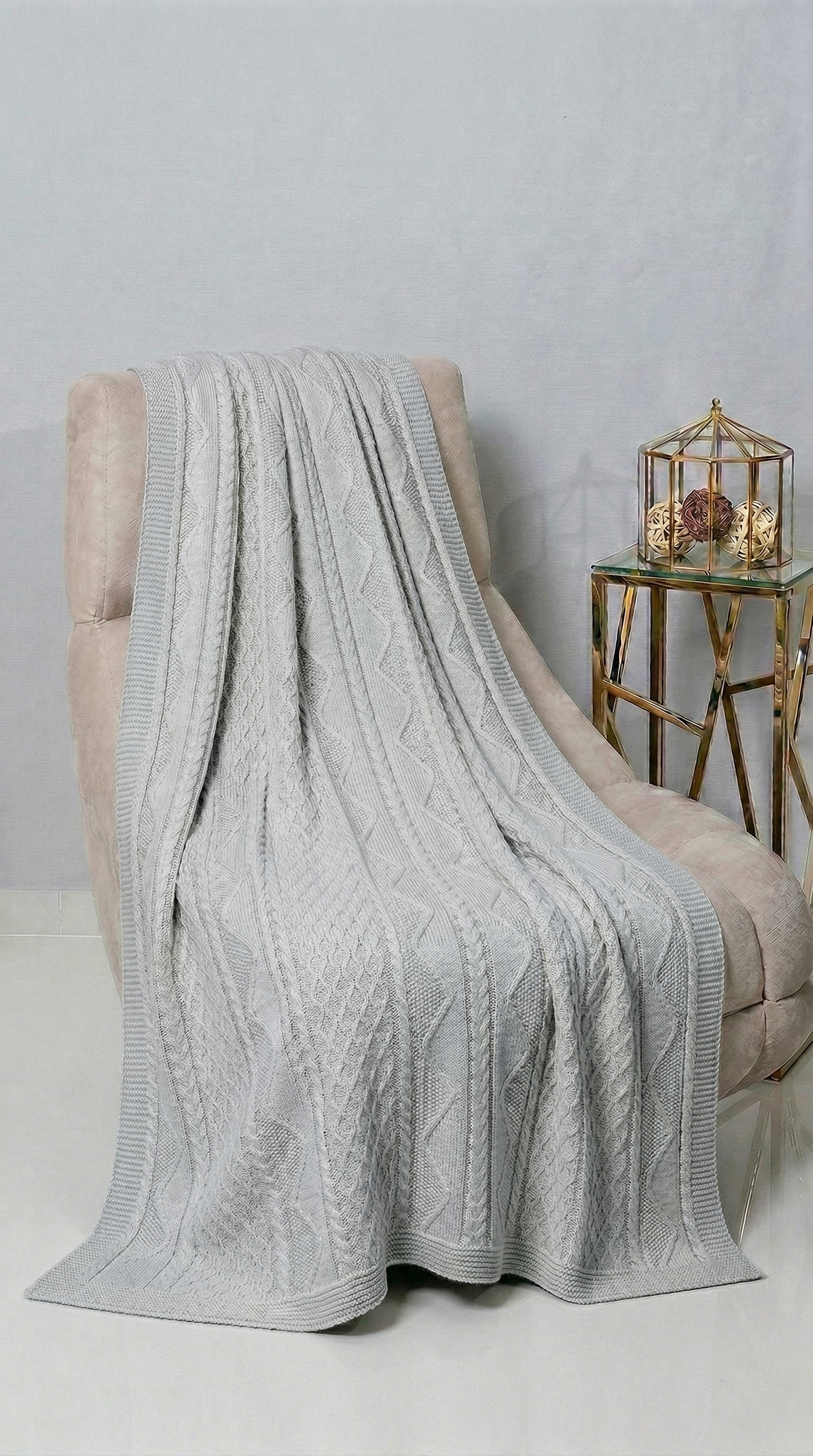 Плед Косы МПД034-03 серый от Фабрики Оренбургских пуховых платков