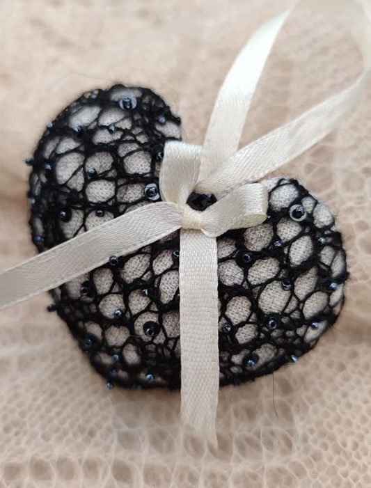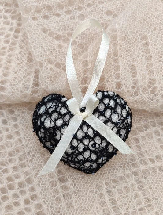 Сувенирное пуховое сердце в размере 5х5, расшитое бисером и паетками. Сувенир можно использовать как новогоднее украшение на ёлку, так и как модный аксессуар, повесив его на сумку или ключи.