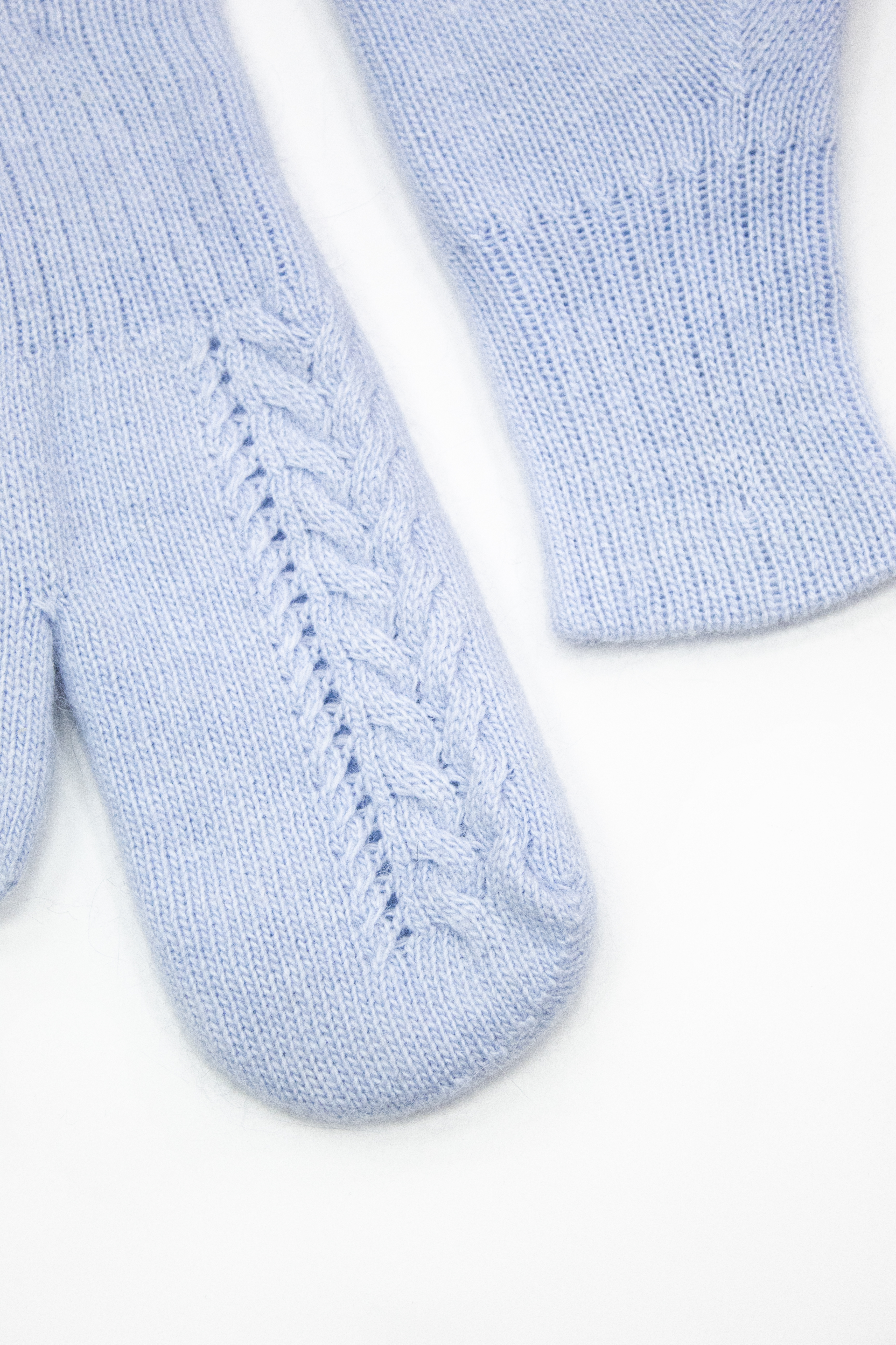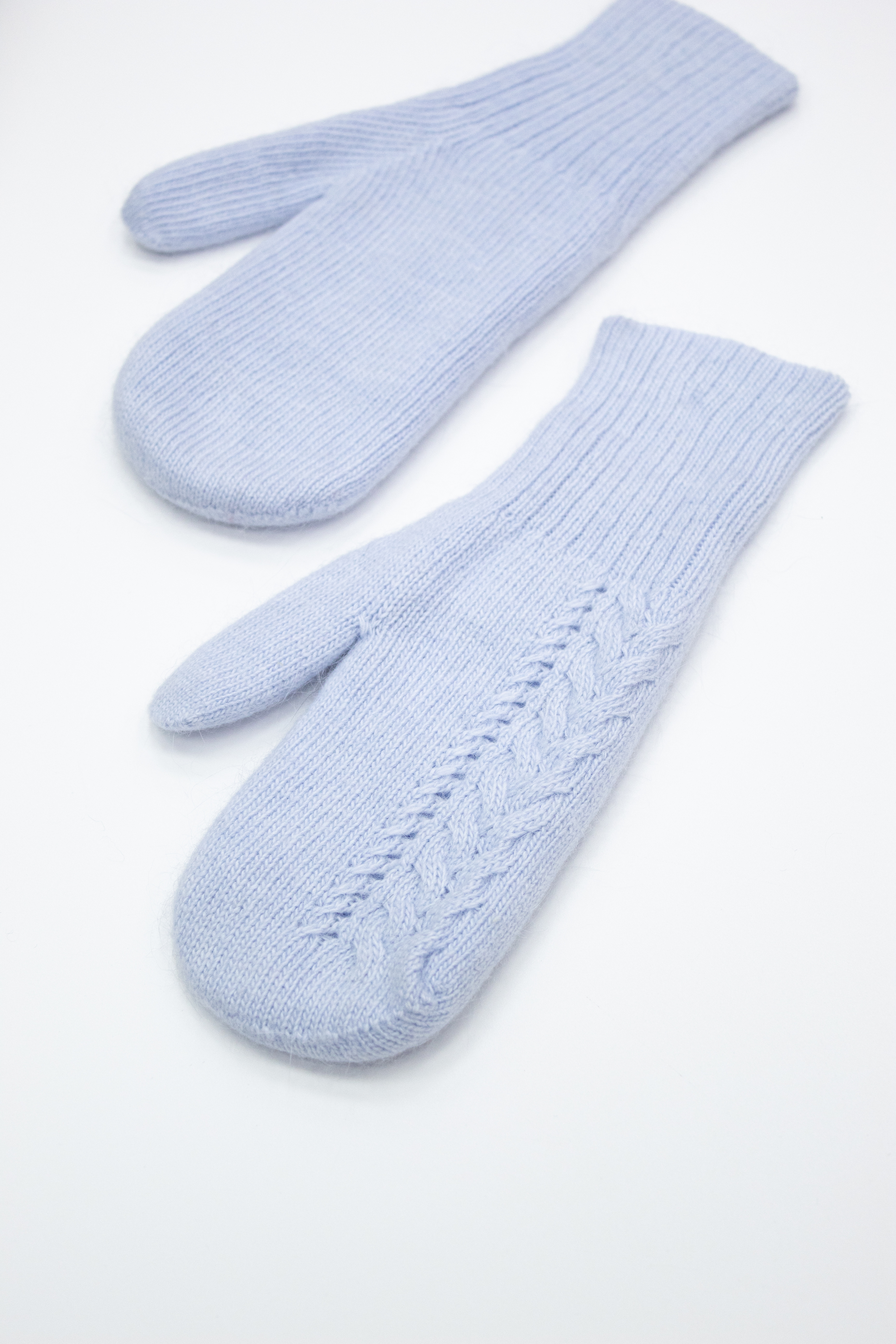 Зимние двухслойные вязаные варежки в нежном сером цвете. Изготовлены из шерсти ангорского кролика с добавлением синтетических волокон. Хорошо держат тепло и не продувают. Оснащены манжетой средней длины в виде резинки. Тактильно очень приятные, не колются. По краям украшены выпуклой вязаной косичкой. Отлично подойдут для длительных прогулок, для занятий спортом на воздухе. Будут великолепным подарком!