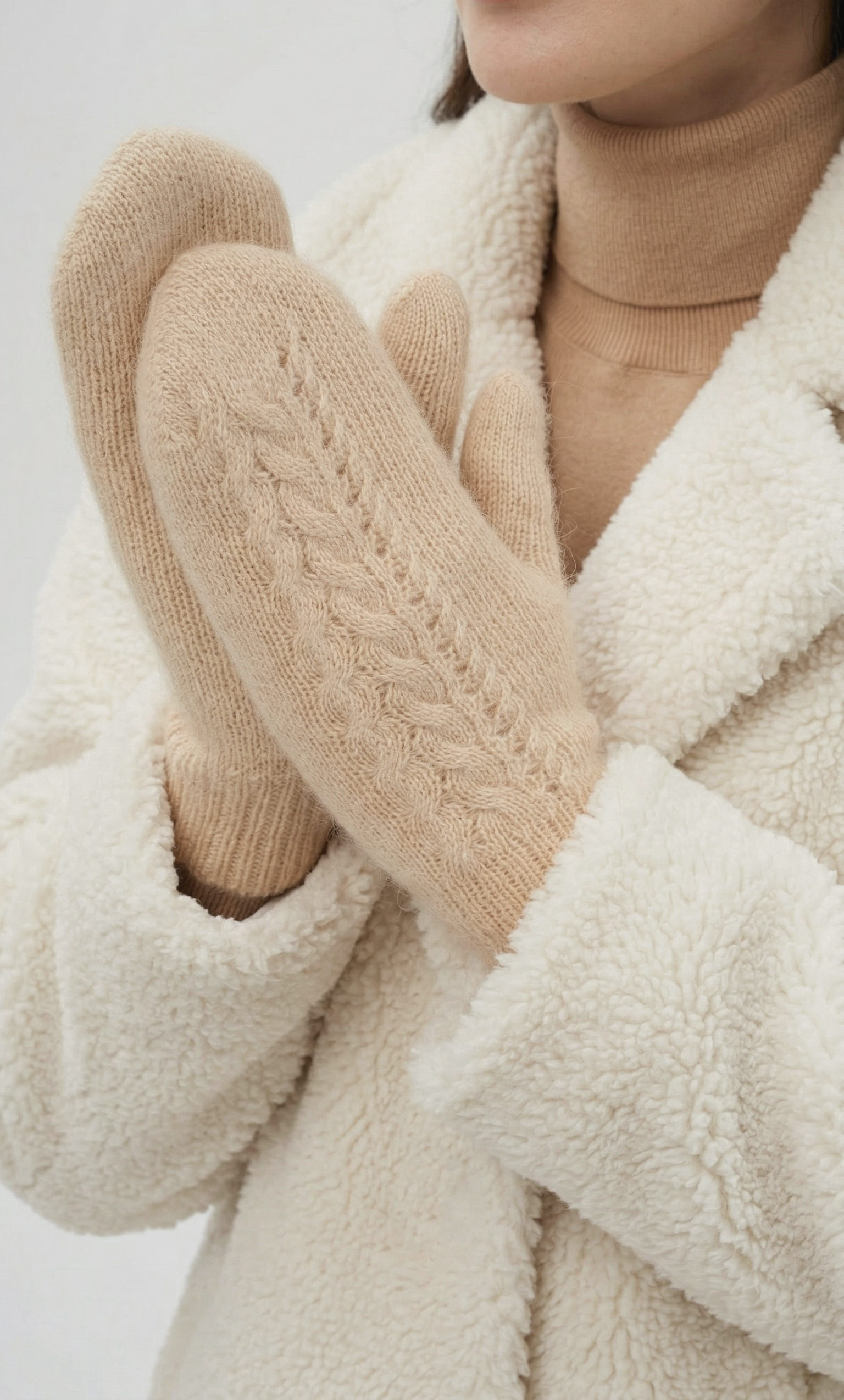 Данная модель варежек двойная, что делает их особенно тёплыми и мягкими. Чтобы подобрать размер варежек, измерьте обхват ладони в самой широкой части без учёта большого пальца — полученное значение в сантиметрах и будет вашим размером.