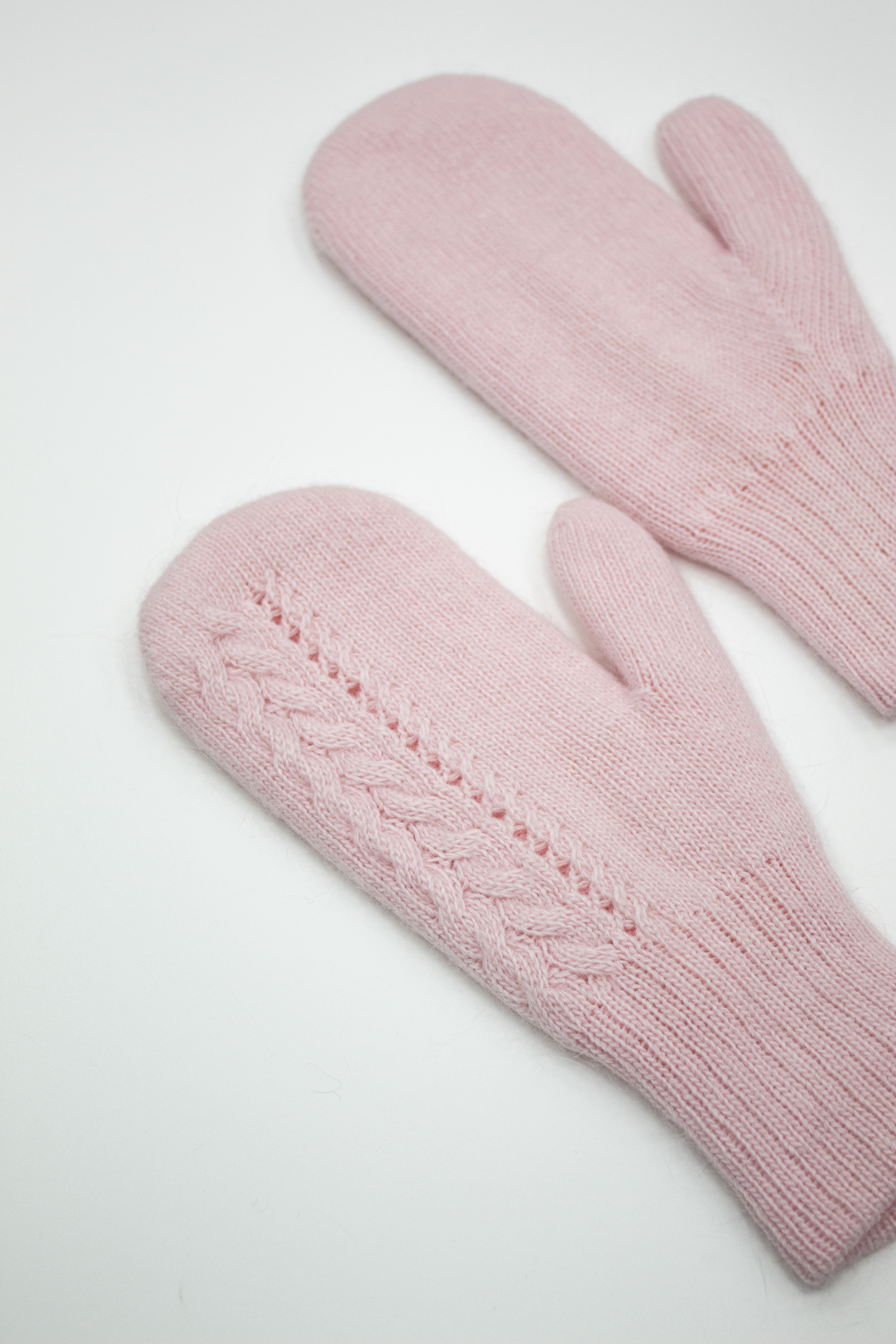 Зимние двухслойные вязаные варежки в нежном сером цвете. Изготовлены из шерсти ангорского кролика с добавлением синтетических волокон. Хорошо держат тепло и не продувают. Оснащены манжетой средней длины в виде резинки. Тактильно очень приятные, не колются. По краям украшены выпуклой вязаной косичкой. Отлично подойдут для длительных прогулок, для занятий спортом на воздухе. Будут великолепным подарком!