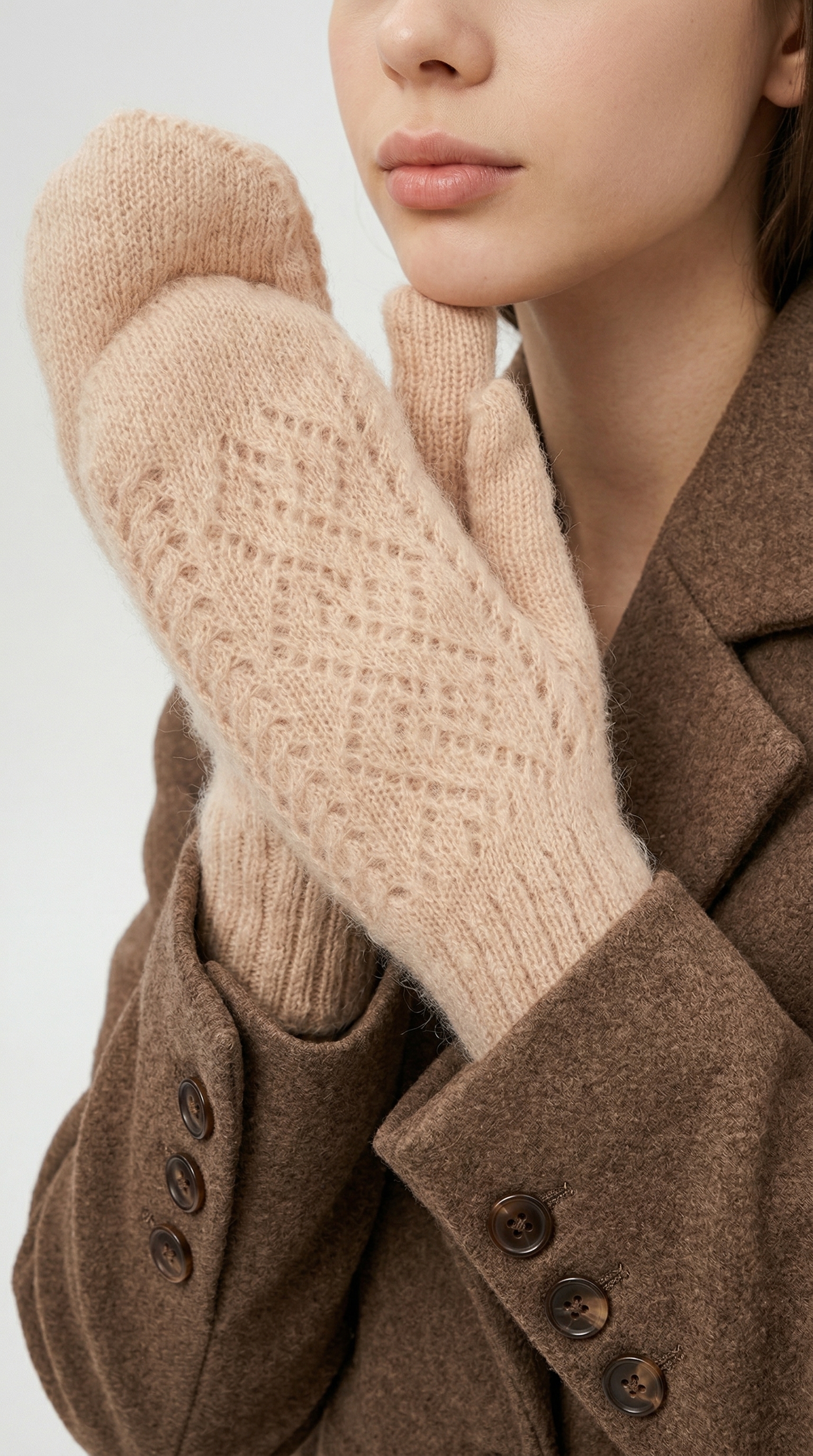 Данная модель варежек двойная, что делает их особенно тёплыми и мягкими. Чтобы подобрать размер варежек, измерьте обхват ладони в самой широкой части без учёта большого пальца — полученное значение в сантиметрах и будет вашим размером.